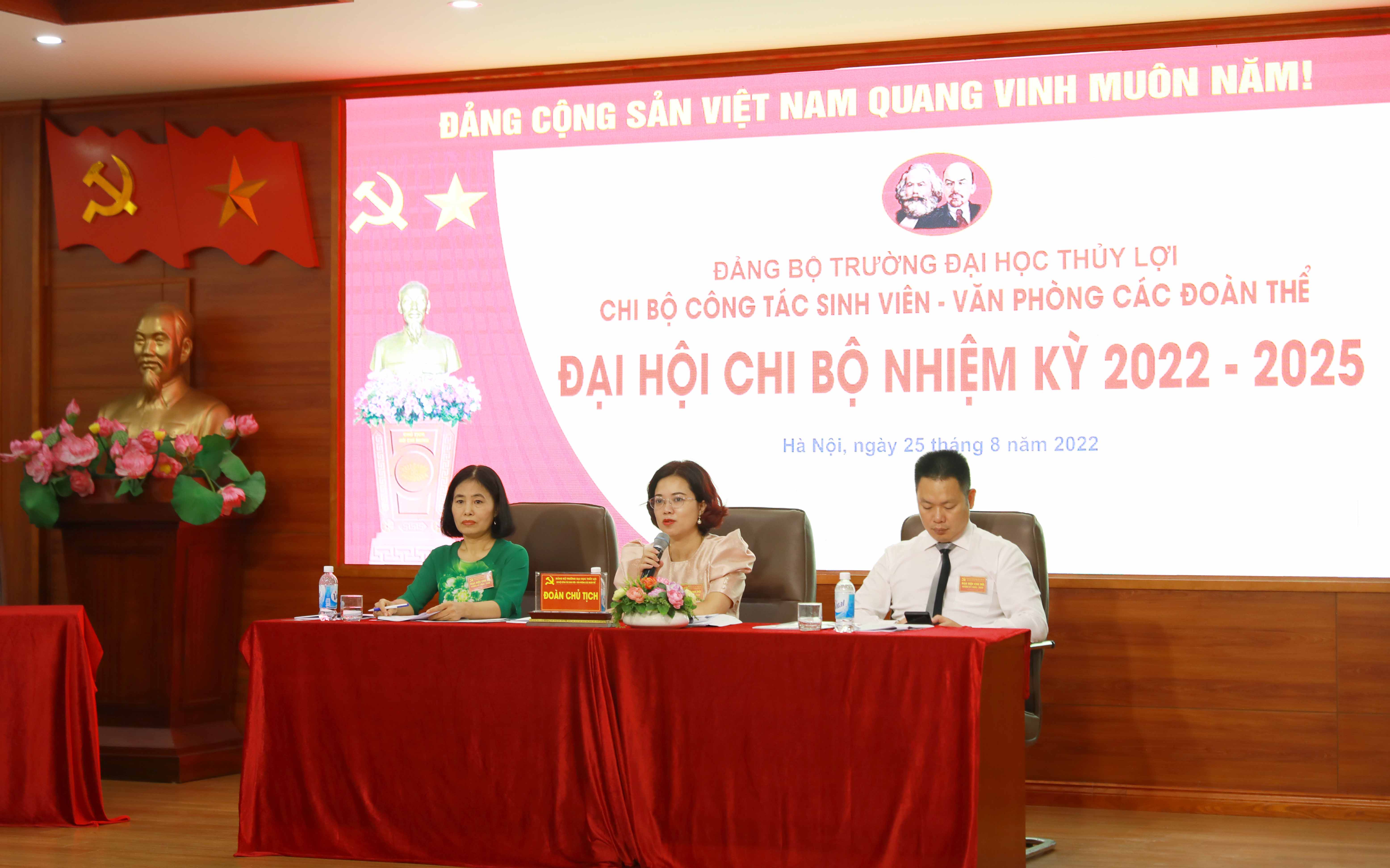 Đại hội chi bộ Công tác sinh viên – Văn phòng các đoàn thể lần này có nhiệm vụ đánh giá tổng kết việc thực hiện nghị quyết chi bộ nhiệm kỳ 2020-2022, đánh giá những việc làm được, những việc chưa làm được, những vấn đề mới nảy sinh, chỉ ra những ưu điểm, khuyết điểm, nguyên nhân và kinh nghiệm trong quá trình thực hiện nhiệm vụ. Trên cơ sở đó đại hội sẽ đề ra phương hướng, mục tiêu, nhiệm vụ chủ yếu trong những năm tiếp theo phù hợp tình hình thực hiện nhiệm vụ chính trị của Trường Đại học Thủy lợi.
