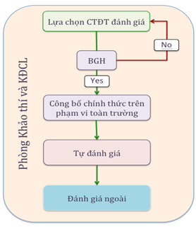 Các khoa/bộ môn phụ trách CTĐT chủ động lập kế hoạch TĐG theo hướng dẫn cụ thể trong công văn 1075/KTKĐCLGD-KĐĐH. Trình tự triển khai được thể hiện ở sơ đồ sau:
