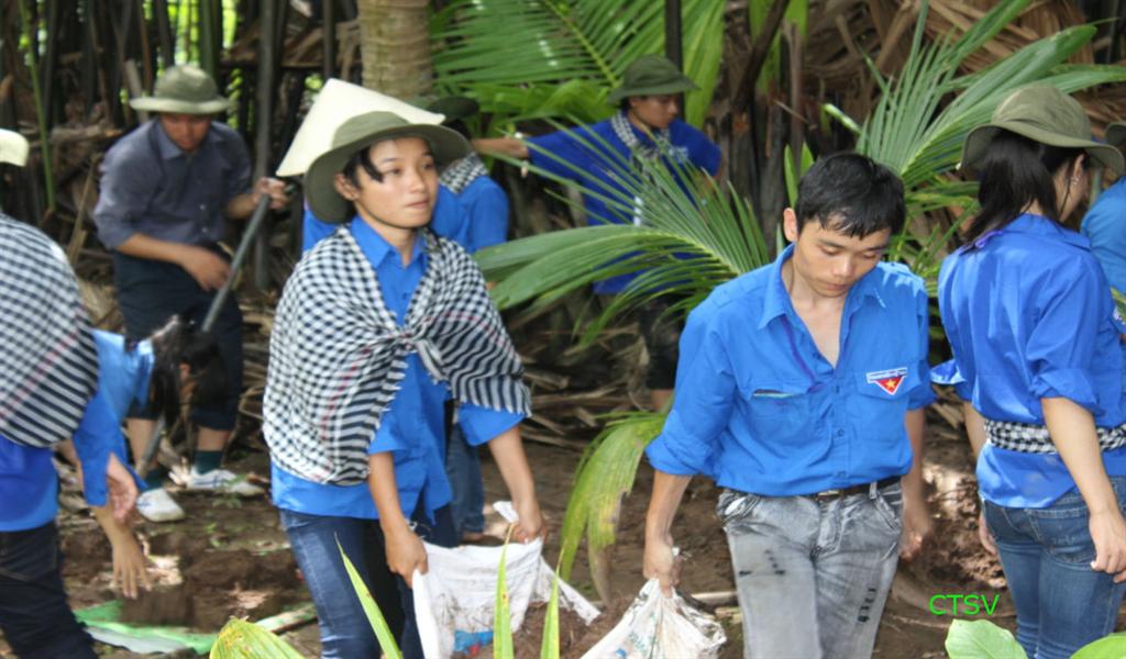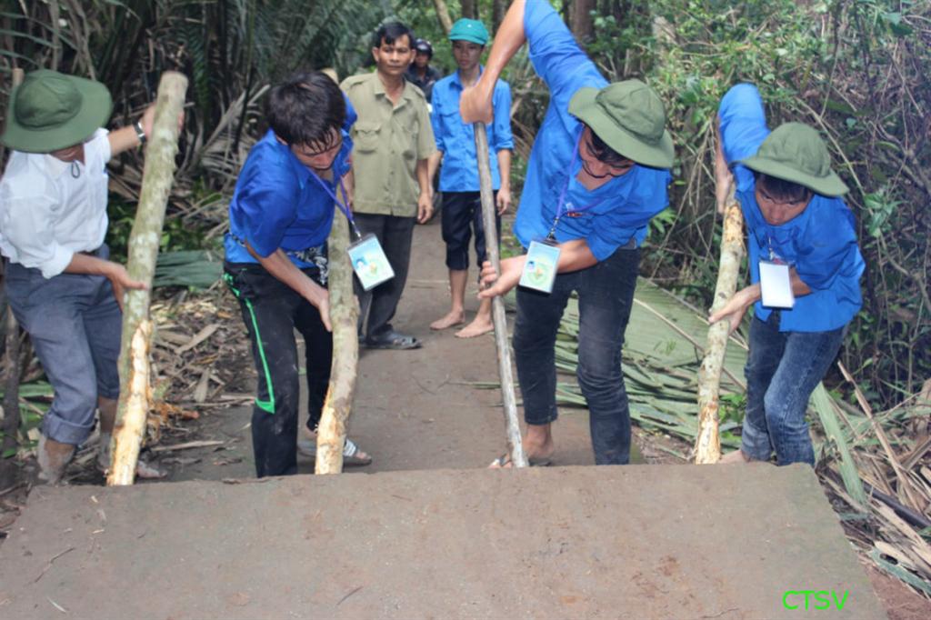 Song song với việc điều tra khảo sát, toàn đội tiến hành phối hợp cùng nhân dân địa phương đóng hơn 100m cọc tre giăng lưới để giữ cho lục bình không bị dòng nước chảy cuốn đi, giảm thiểu tới mức thấp nhất tác động của sóng tới tình trạng sạt lở đất cho đoạn bờ bao sông Hậu trên cồn Mỹ Phước- xã Nhơn Mỹ đang rất yếu, nguy cơ bị sạt lở rất cao, cũng như đắp lại đoạn đường bị sạt lở để bà con đi lại thuận tiện hơn trong mùa mưa lũ.