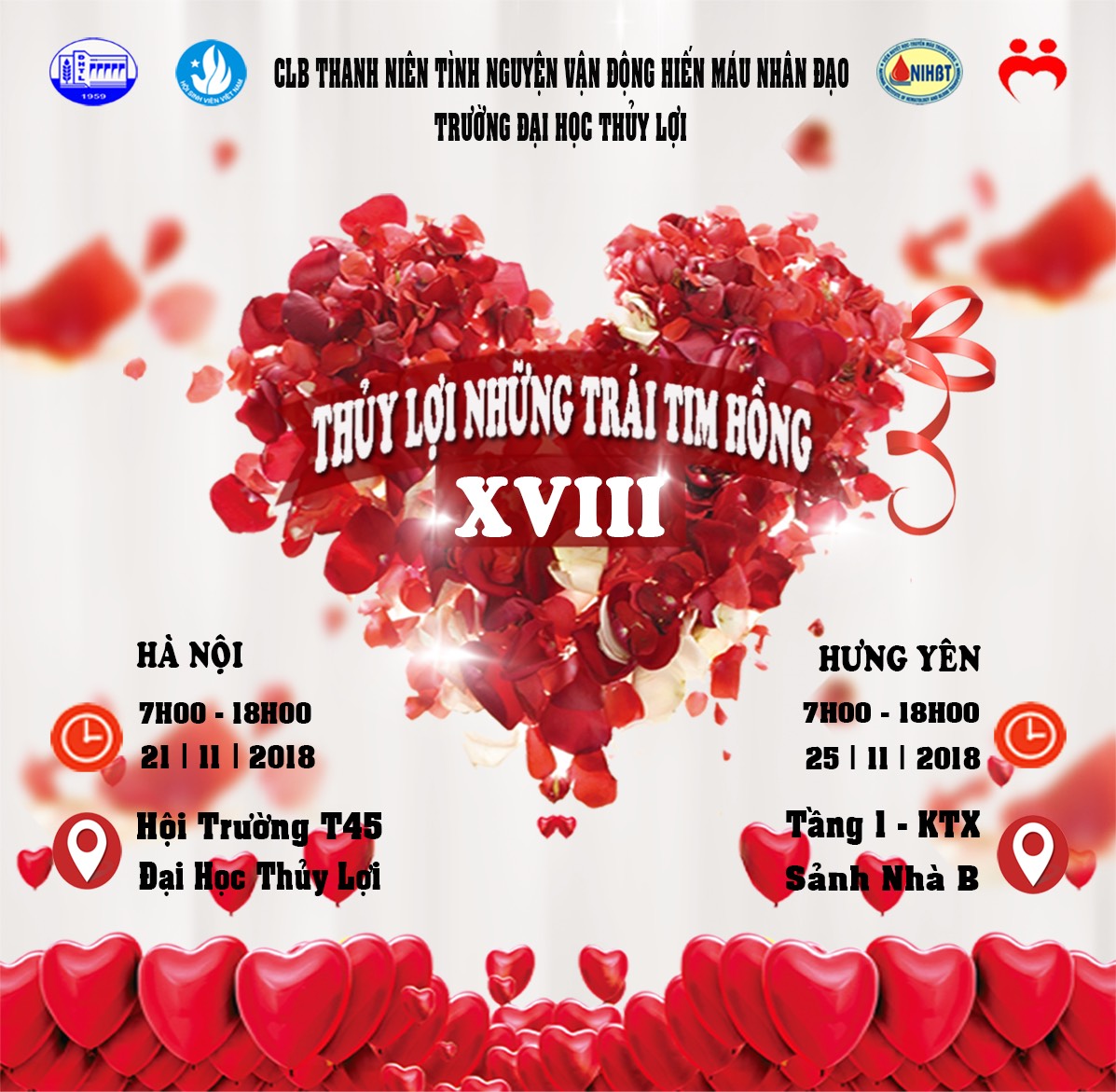 Theo em Nguyễn Minh Tiến – Chủ nhiệm CLB thanh niên tình nguyện vận động hiến máu nhân đạo Trường Đại học Thủy lợi – sinh viên lớp 58M-KTO, Khoa Cơ khí cho biết: Ngày hội hiến máu Thủy lợi những trái tim hồng lần thứ XVIII được Viện huyết học và Truyền máu Trung ương đánh giá là rất thành công. Vượt chỉ tiêu đề ra của CLB là 42 đơn vị máu.