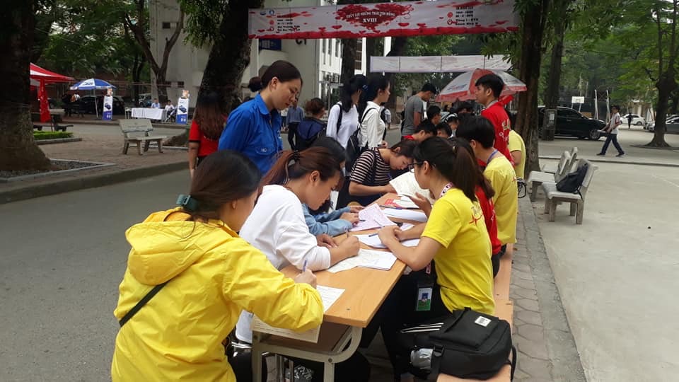 Các bạn trẻ đăng ký tham dự ngày hội hiến máu