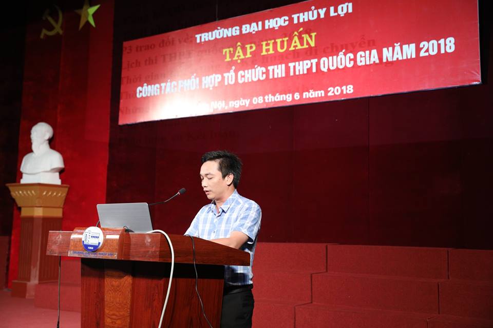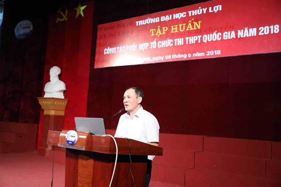 Năm 2018 này, Trường Đại học Thủy lợi được Bộ Giáo dục và Đào tạo phân công cùng kết hợp với Sở GD&ĐT tỉnh Thanh Hóa thực hiện các công việc của kỳ thi. Theo đó, Nhà trường đã cử hơn 400 cán bộ coi thi, giám sát thi, thanh tra thi về 21 điểm thi thuộc 11 huyện của tỉnh Thanh Hóa. Công tác tập huấn công tác thi đã được Nhà trường thực hiện vào chiều hôm nay 8/6/2018 tại Hội trường T45.