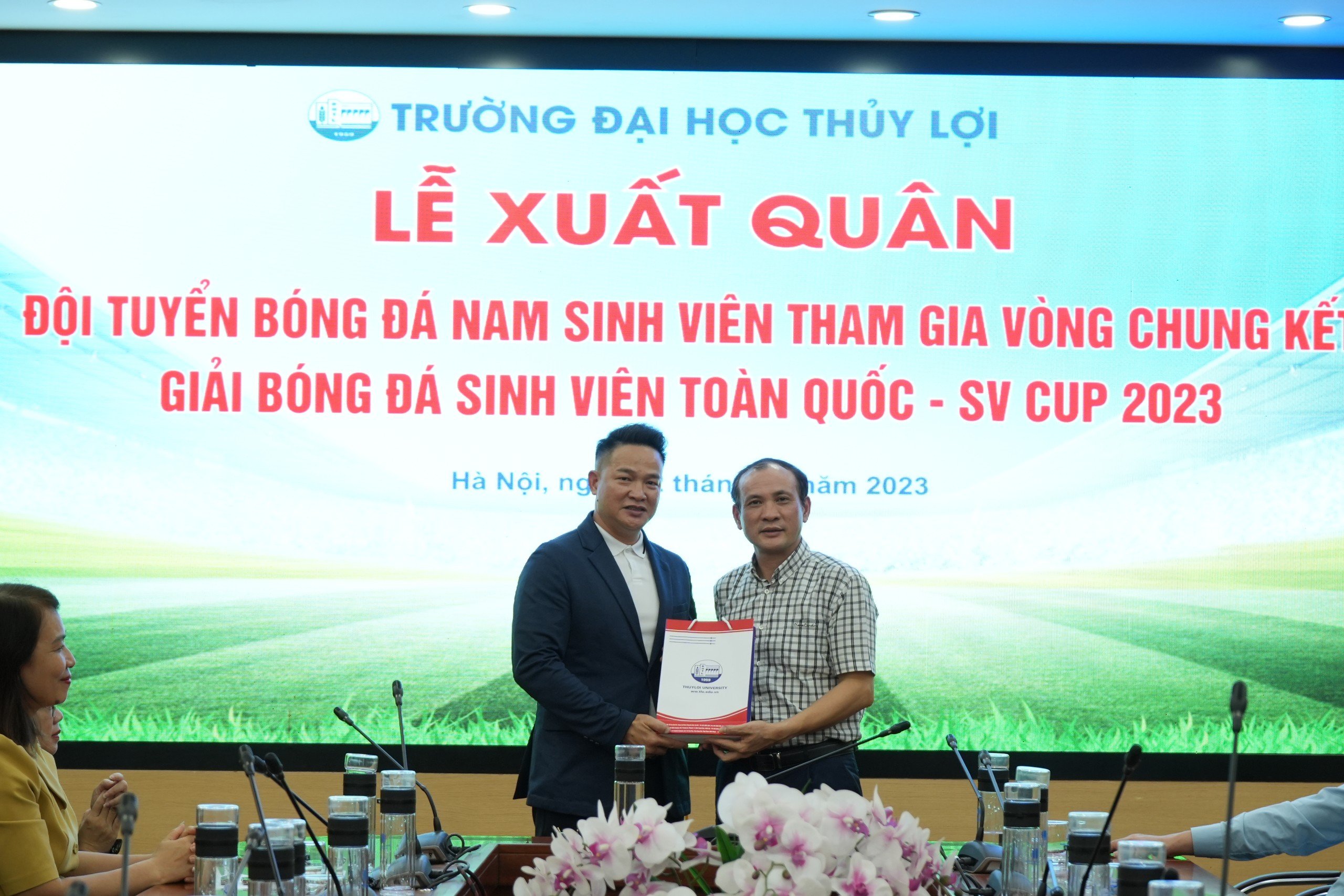 Phát biểu tại buổi lễ, Ông Nguyễn Mã Lương, Phó Giám đốc Công Ty TNHH TM&DV Việt Hoa, hứa sẽ đồng hành và tài trợ cho đội bóng trong các năm tiếp theo. GS.TS Nguyễn Trung Việt, Phó Hiệu trưởng Nhà trường, cũng đã gửi lời chúc mừng và động viên đội tuyển, Giáo sư tin tưởng vào khả năng vượt qua mọi khó khăn để tiến tới thành công của một tập thể đoàn kết, có thực lực và nhiệt huyết.