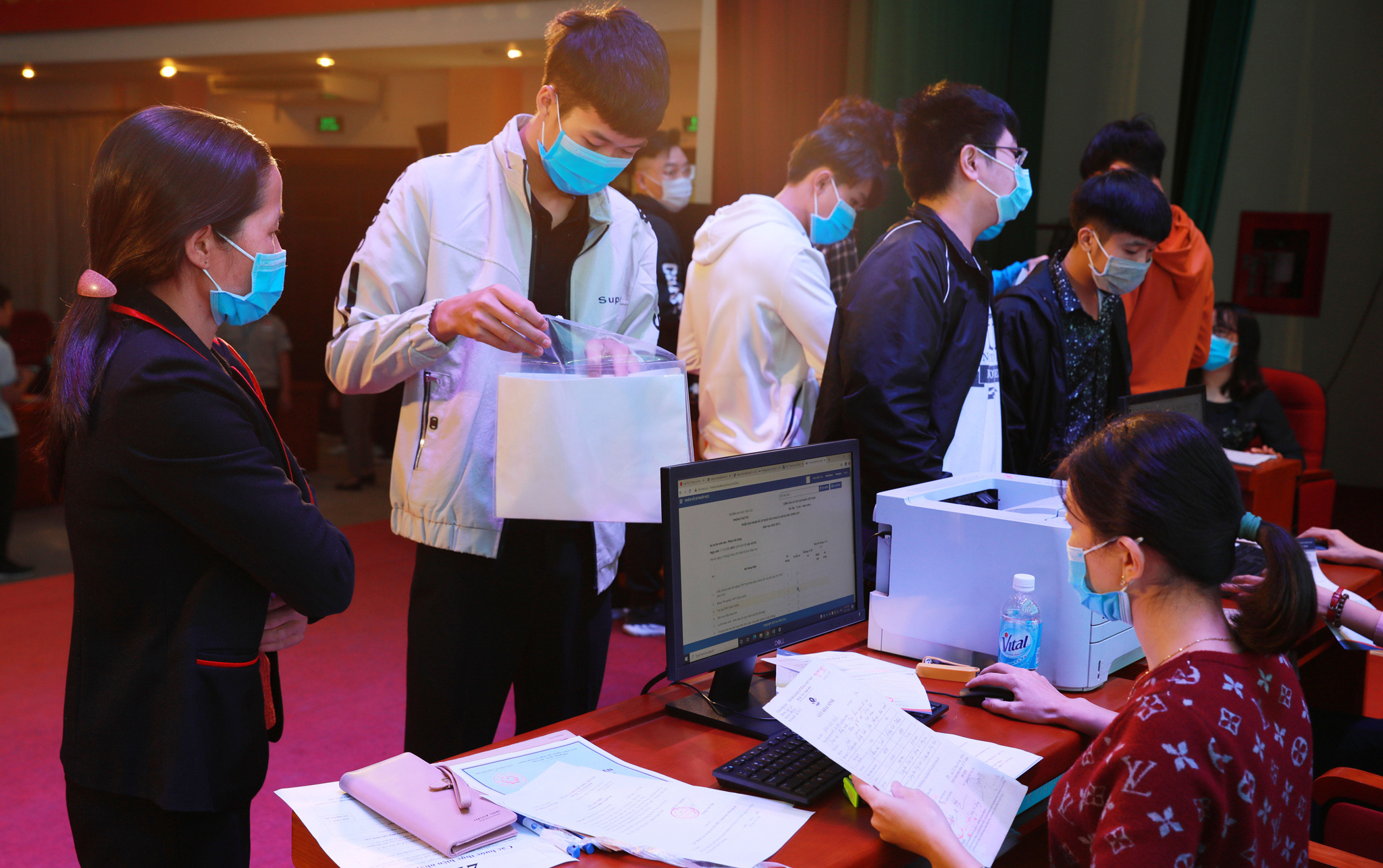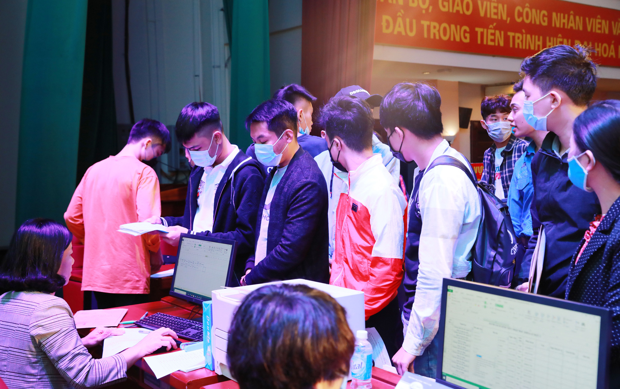 Tân sinh viên K62 làm thủ tục nhập học tại Hội trường T45