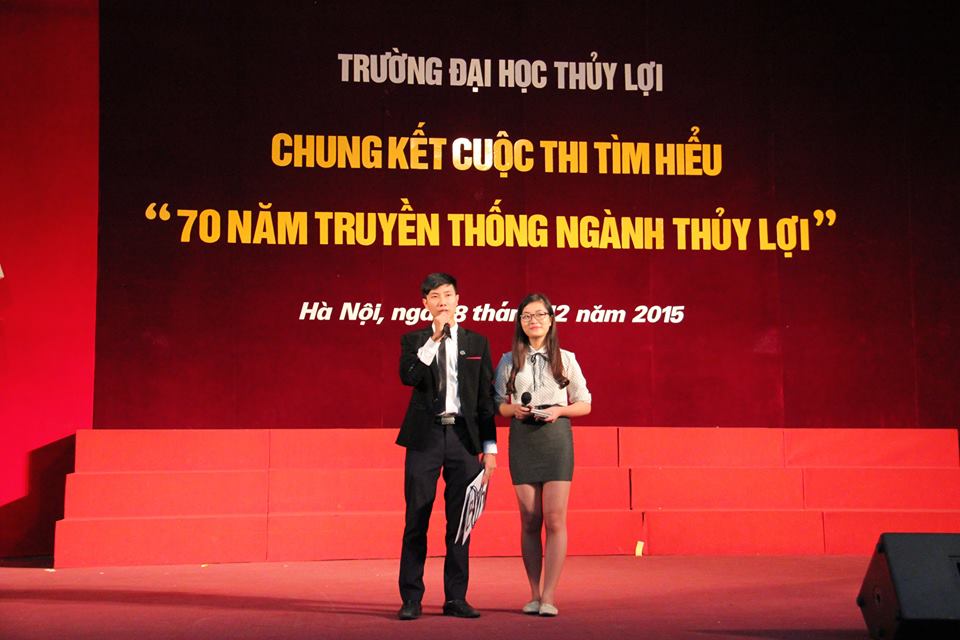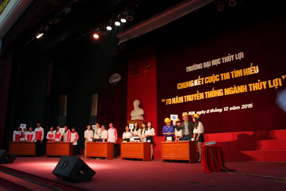 Ngày 08/12/2015, tại hội trường T45, Ban chấp hành Đoàn thanh niên Cộng sản Hồ Chí Minh trường Đại học Thủy lợi đã tổ chức đêm chung kết cuộc thi tìm hiểu “70 năm truyền thống ngành Thủy lợi”. Tới dự với đêm chung kết có: GS.TS.Trịnh Minh Thụ – Phó Bí thư Đảng ủy, Phó hiệu trưởng Nhà trường, NGND Phạm Ngọc Quý – Nguyên Bí thư Đảng ủy, Nguyên Phó hiệu trưởng Nhà trường, PGS. TS. Nguyễn Tuấn Anh – Trưởng phòng Đào tạo Đại học và Sau Đại học, ThS. Đặng Hương Giang – Trưởng, TS.Nguyễn Đình Trinh – Bí thư Đoàn trường cùng đông đảo các cổ động viên và thành viên của các đội thi đến từ các khoa trong Nhà trường.