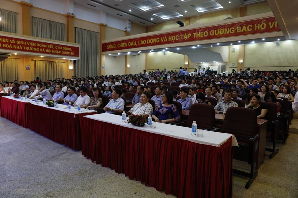 Đại biểu, cán bộ, đảng viên và sinh viên trong toàn trường đến tham dự