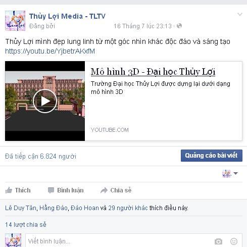 Xuất hiện trên mạng xã hội trong những ngày tháng 7 một clip về hình ảnh trường Đại học Thủy Lợi với một cách thể hiện hết sức độc đáo lần đầu tiên được thực hiện hoàn chỉnh đó là hình ảnh khuôn viên trường với hình ảnh 3D sống động và rất ấn tượng.
