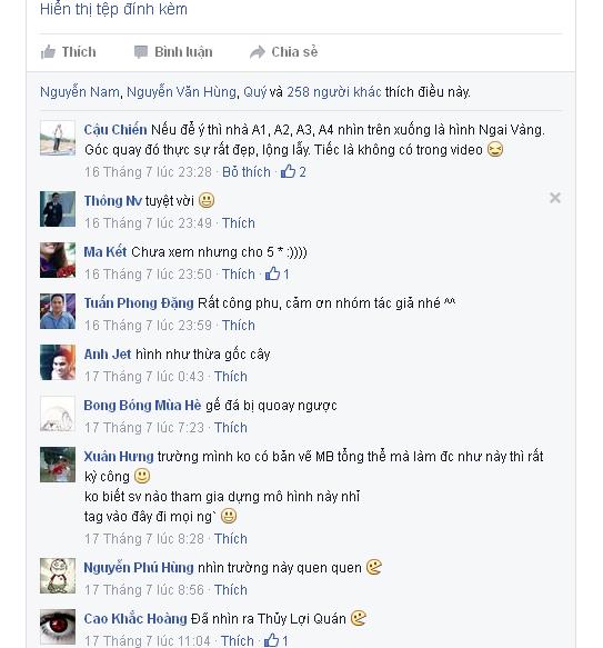 Bạn Xuân Hưng chia sẻ “Trường mình không có bản vẽ mặt bằng tổng thể mà làm được như thế này thì rất kỳ công”, Bạn có nick name Đặng Tuấn Phong viết “Rất công phu, cám ơn nhóm tác giả”.