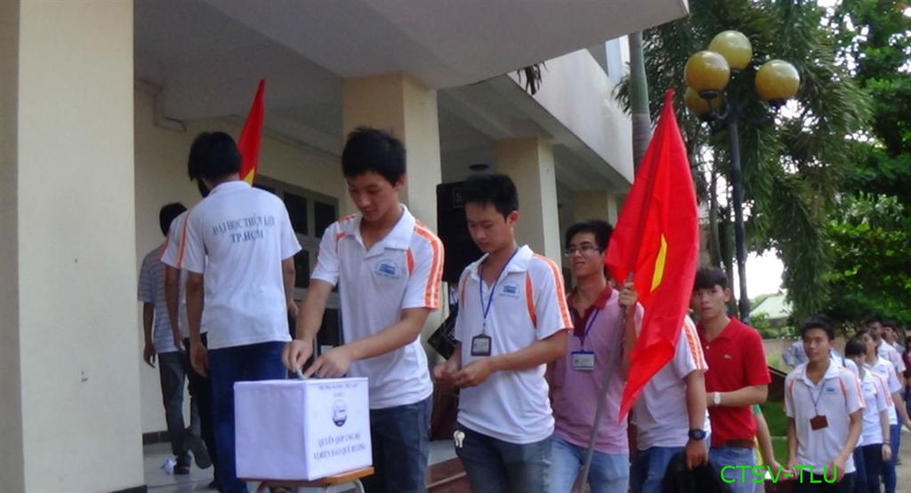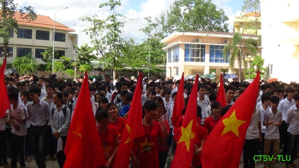 Cùng chung tay với cán bộ, giáo viên, sinh viên cả nước góp sức quyên góp hỗ trợ cho bà con ngư dân, các lực lượng chức năng của ta đang ngày đêm kiên cường bám biển trực tiếp đối đấu với những hiểm nguy để bảo vệ chủ quyền biển đảo thiêng liêng của Tổ quốc, sáng nay 26/05/2014 toàn thể cán bộ, giảng viên và gần 2000 sinh viên Cơ sở 2 – Đại học Thủy lợi đã tụ họp về sân trường tại cơ sở Bình Dương để có những hành động thiết thực của mình thể hiện tình yêu dành cho biển đảo quê hương, cũng là một cách để thể hiện lòng yêu nước, phát huy truyền thống cha ông đã gây dựng biết bao đời nay.