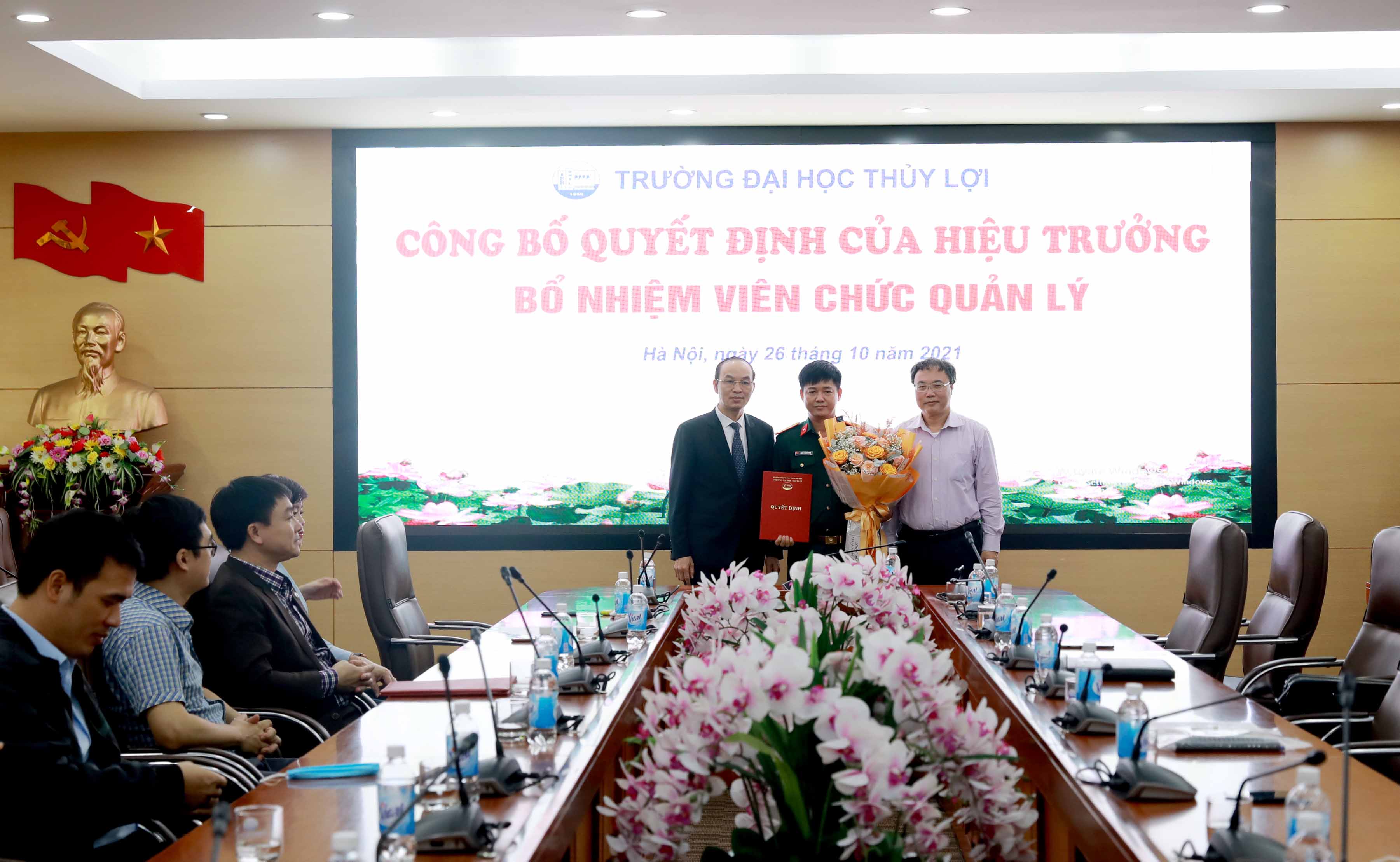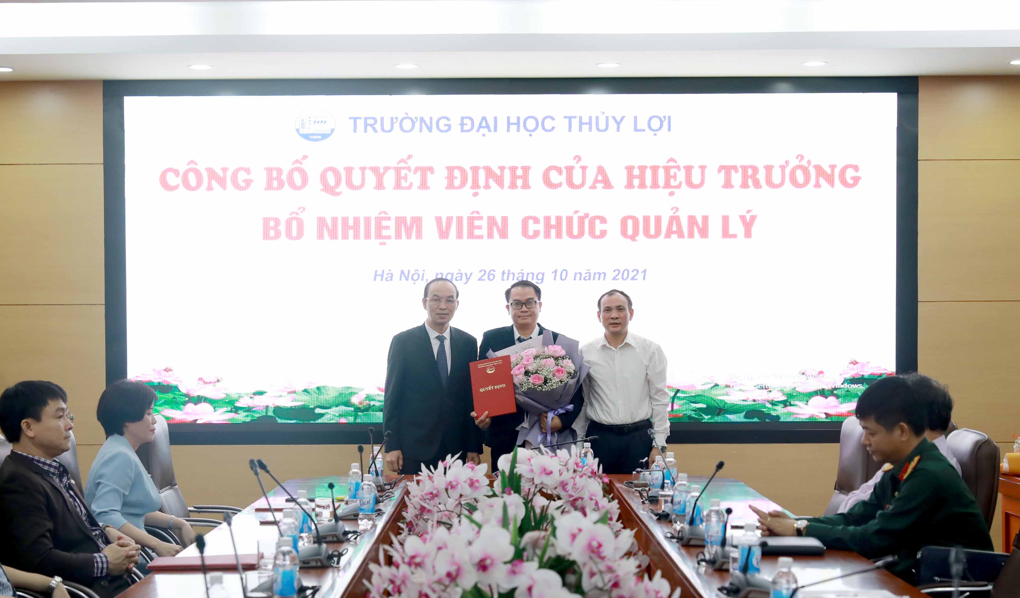 Sáng nay 26/10, Trường Đại học Thủy lợi diễn ra buổi công bố các quyết định bổ nhiệm viên chức quản lý. Buổi lễ có sự tham dự của GS.TS Trịnh Minh Thụ – Hiệu trưởng, PGS.TS Nguyễn Cảnh Thái – Phó Hiệu trưởng, GS. TS Nguyễn Trung Việt – Phó hiệu trưởng, đại diện Công đoàn, Đoàn Thanh niên, các Phòng chức năng và các viên chức được bổ nhiệm.