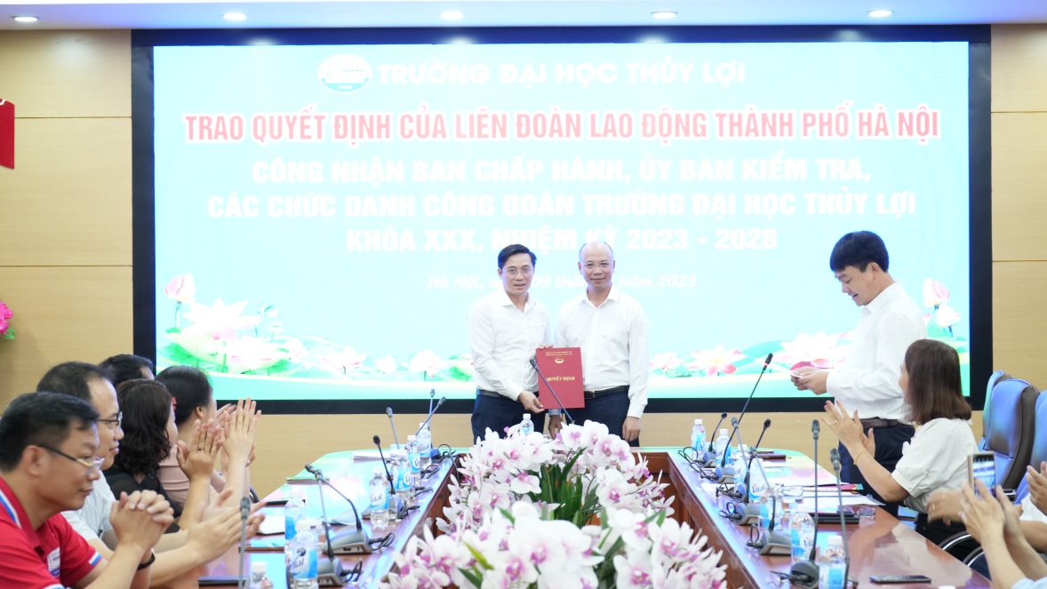 Sáng ngày 9/5, Ban chấp hành Công đoàn Trường Đại học Thủy lợi tổ chức buổi lễ trao Quyết định của Liên đoàn Lao động Thành phố Hà Nội công nhận Ban chấp hành, Ủy Ban kiểm tra, các chức danh công đoàn Trường Đại học Thủy lợi khóa XXX, nhiệm kỳ 2023-2028.