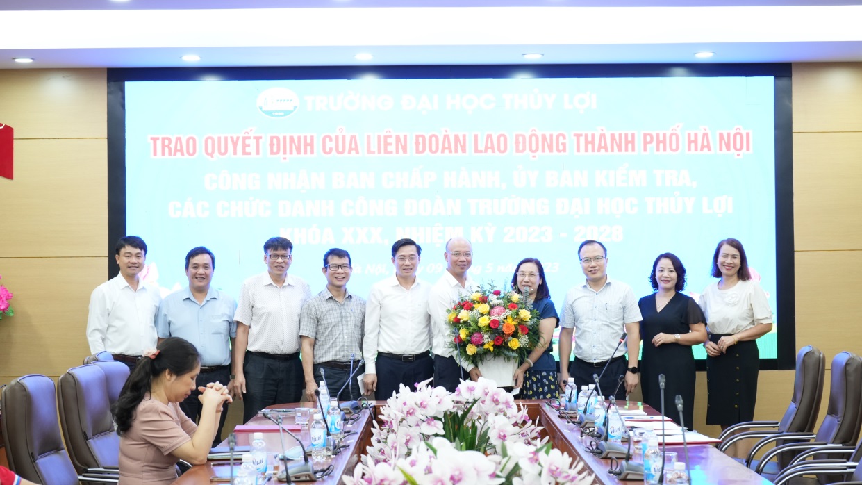 Sáng ngày 9/5, Ban chấp hành Công đoàn Trường Đại học Thủy lợi tổ chức buổi lễ trao Quyết định của Liên đoàn Lao động Thành phố Hà Nội công nhận Ban chấp hành, Ủy Ban kiểm tra, các chức danh công đoàn Trường Đại học Thủy lợi khóa XXX, nhiệm kỳ 2023-2028.