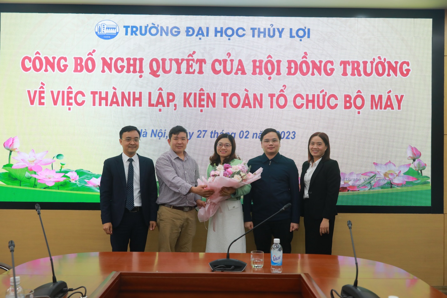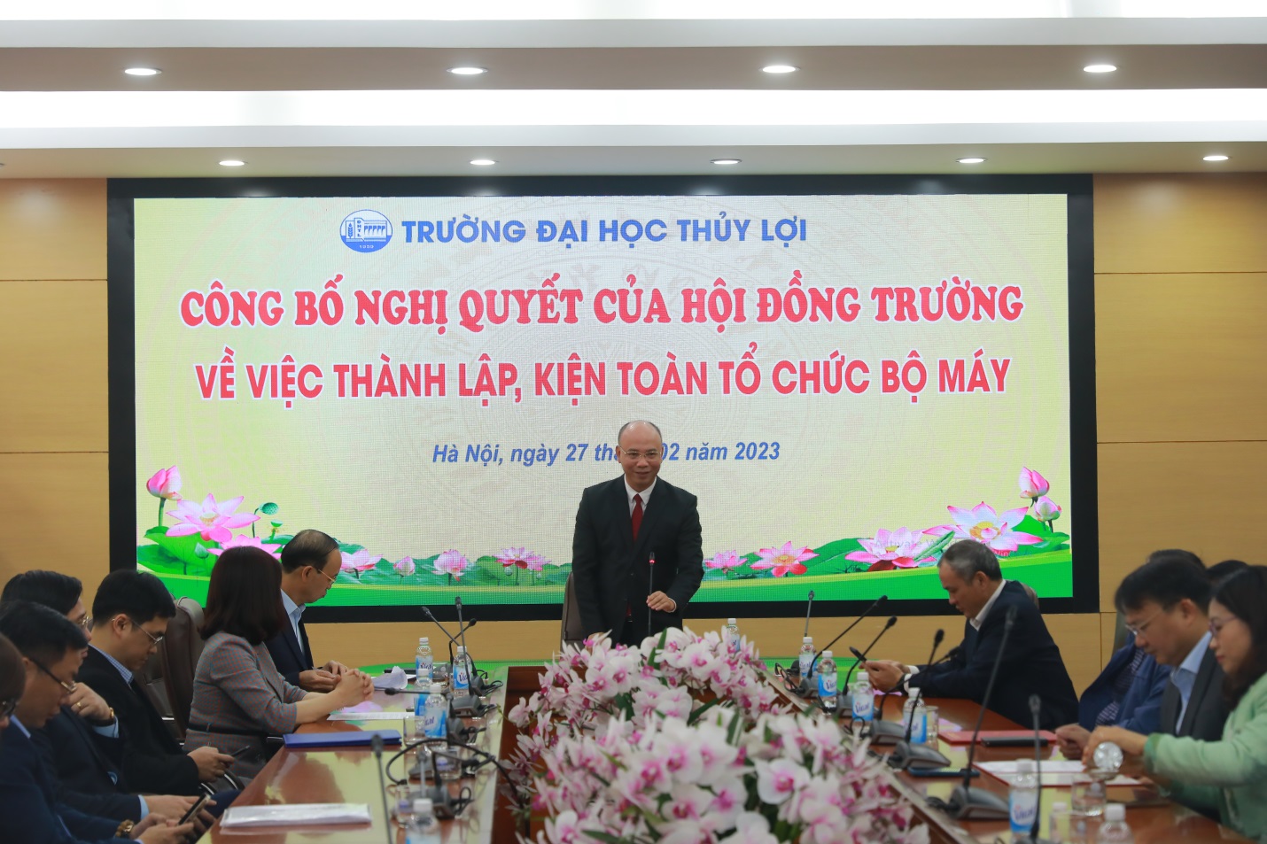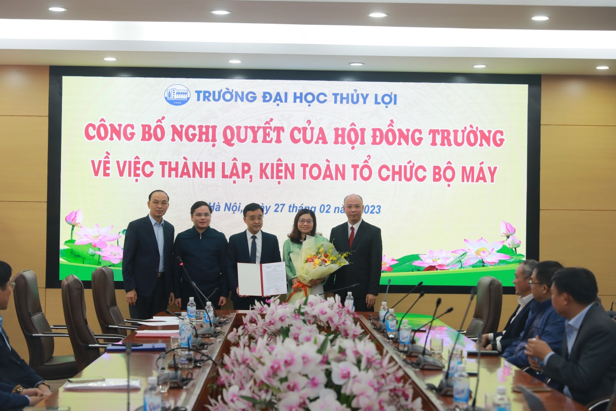 Chia sẻ và giao nhiệm vụ, Giáo sư – Hiệu trưởng Trịnh Minh Thụ nhấn mạnh, trong chiến lược phát triển, Trường Đại học Thủy lợi phấn đấu thành trường đại học đa ngành định hướng nghiên cứu và trong những năm qua việc chuyển đổi, đổi mới và sự phát triển mạnh mẽ của các khoa đến nay Trường Đại học Thủy lợi đã thành trường đại học đa ngành thực thụ với trên 70 ngành đào tạo, trong đó 40 ngành đào tạo bậc đại học, trên 20 ngành bậc cao học và 11 ngành trình độ tiến sĩ. Trong sự chuyển đổi đó, Nhà trường vinh dự được đón nhiều thầy cô giáo từ nhiều trường đại học, nhiều viện nghiên cứu về. Nhân dịp này, Giáo sư chúc mừng các Khoa, Bộ môn được kiện toàn, thành lập mới với vai trò, nhiệm vụ mới sẽ cùng với Nhà trường phát triển, chất lượng hiệu quả, mang lại thương hiệu uy tín trong các ngành nghề đào tạo.