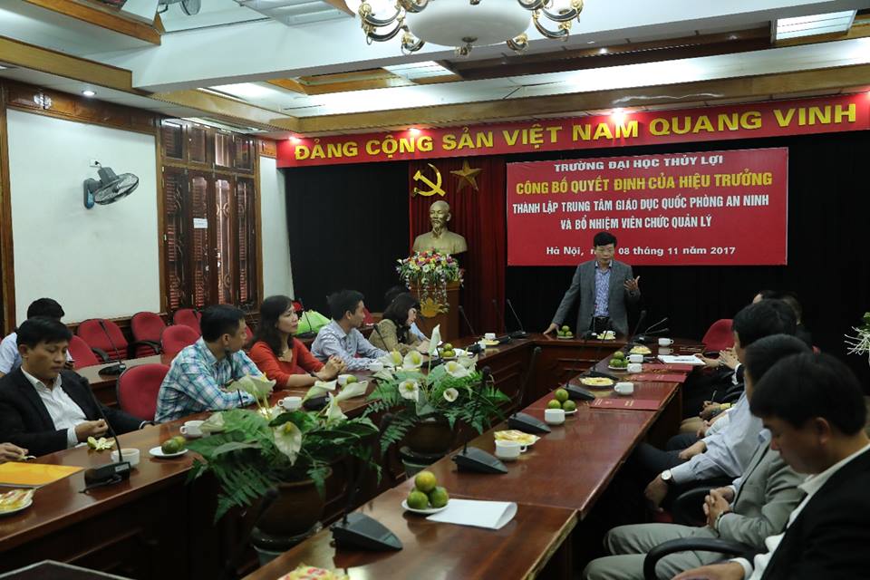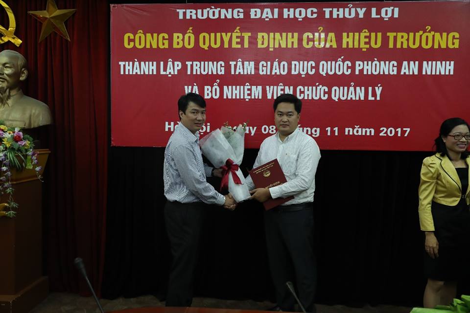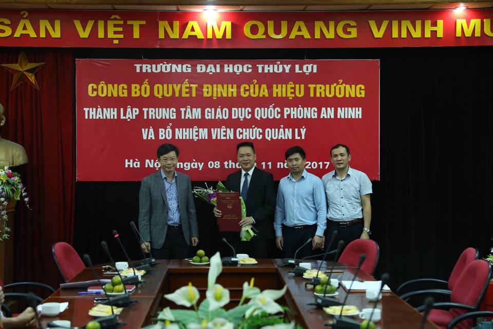 Trong dịp này, Nhà trường đã công bố quyết định thành lập Trung tâm Giáo dục Quốc phòng và an ninh (GDQP & AN) và bổ nhiệm GS. TS Nguyễn Quang Kim – Hiệu trưởng kiêm nhiệm chức vụ Giám đốc Trung tâm, TS Nguyễn Đình Trinh – Giảng viên Bộ môn Vật liệu xây dựng – Bí thư Đoàn thanh niên giữ chức Phó Giám đốc.