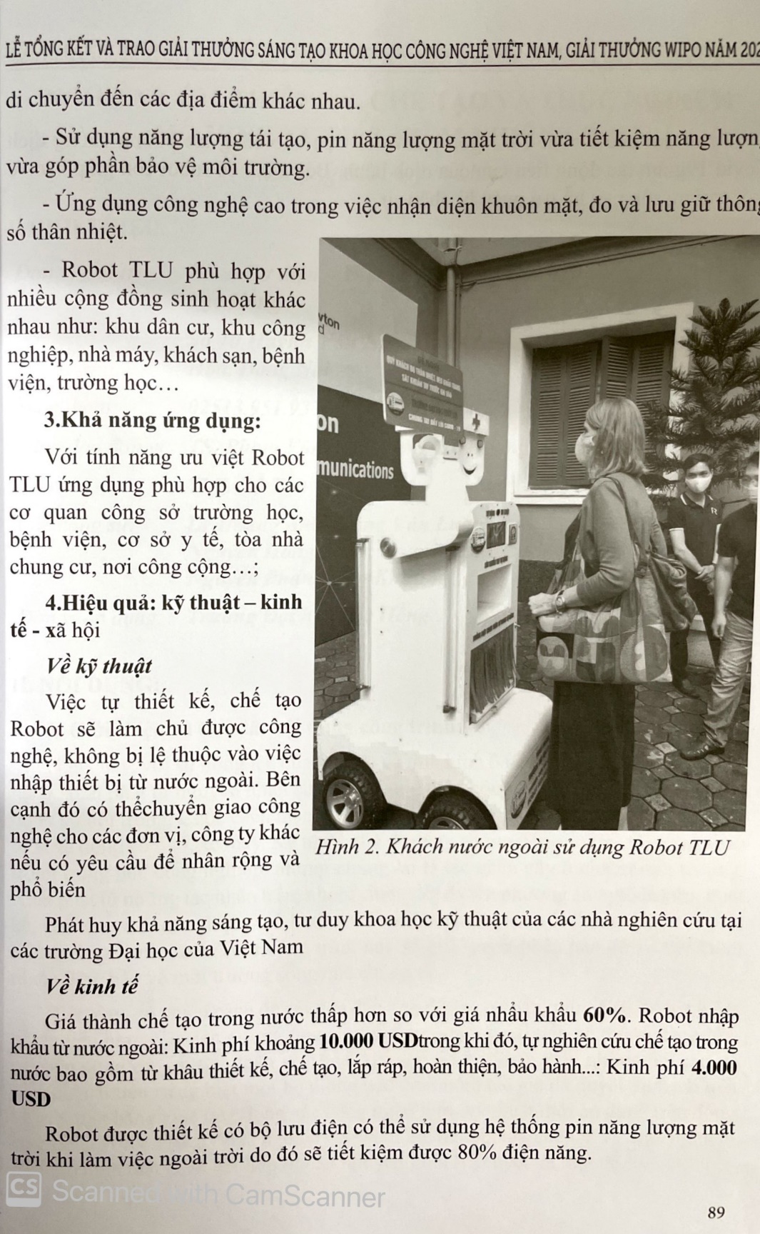 Công trình “Robot đa năng TLU phòng, chống dịch, bảo vệ môi trường và quản lý nhân sự” của Khoa Cơ khí đã giành giải Ba. Theo đánh giá của Ban tổ chức: sự ra đời của Robot TLU góp phần tích cực cho công tác phòng chống dịch Covid-19, giảm tác động tiêu cực của dịch bệnh. Bên cạnh đó Robot còn giúp bảo vệ môi trường sống và quản lý nhân sự. Công trình được phát triển bởi nhóm tác giả: