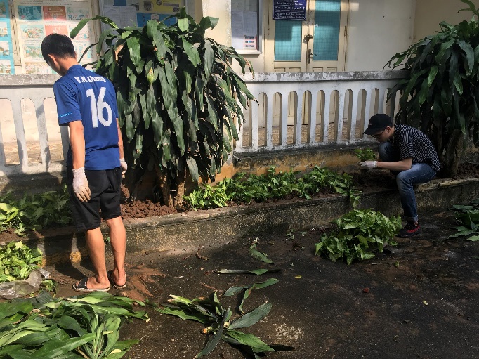 Trong 2 ngày 11&12/8, hơn 30 tình nguyện viên đến từ các Câu lạc bộ, các liên chi hội đã tiến hành dọn dẹp vệ sinh các bồn cây, bóc bỏ lớp đất mặt bạc màu, bồi đắp bổ sung hơn 12m2 đất màu phục vụ trồng cây.