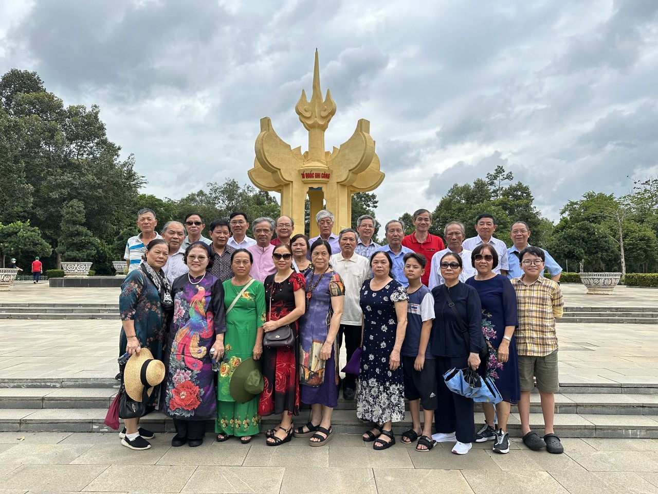 17N chụp ảnh lưu niệm tại đài tưởng niệm liệt sĩ và lán họp chỉ huy căn cứ bộ chỉ huy miền tại Tà Thiết, Lộc Ninh, Bình Phước