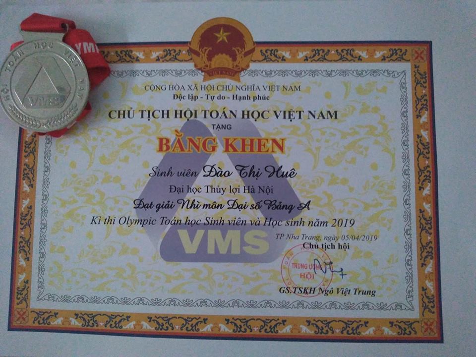 Phần thưởng của thí sinh giành giải Nhì Olympic Toán học toàn quốc 2019