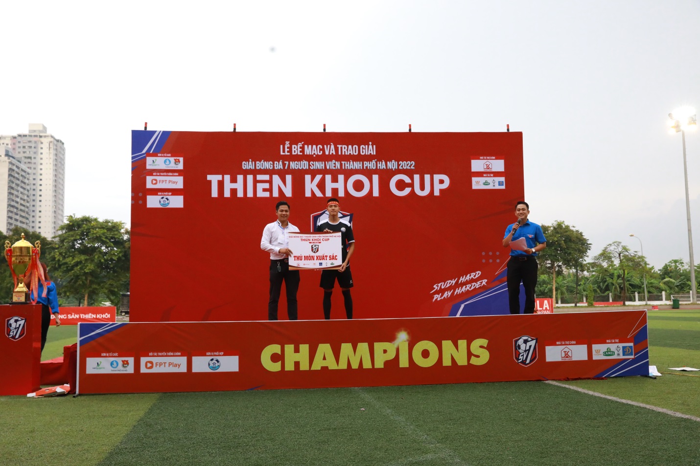 Dự Lễ bế mạc và trận chung kết Giải Bóng đá nam 7 người sinh viên TP. Hà Nội năm 2022 – Thiên Khôi Cup có ông Phạm Xuân Tài – Phó Giám đốc Sở Văn hóa Thể thao Hà Nội; ông Dương Minh Tiến – Phó phòng Quản lý thể thao, Sở Văn hóa Thể thao Hà Nội; ông Nguyễn Thành Dũng – Chủ tịch Công ty cổ phần bất động sản Thiên Khôi – nhà tài trợ chính; đồng chí Nguyễn Mạnh Linh – Phó Chủ tịch Hội Sinh viên Hà Nội…