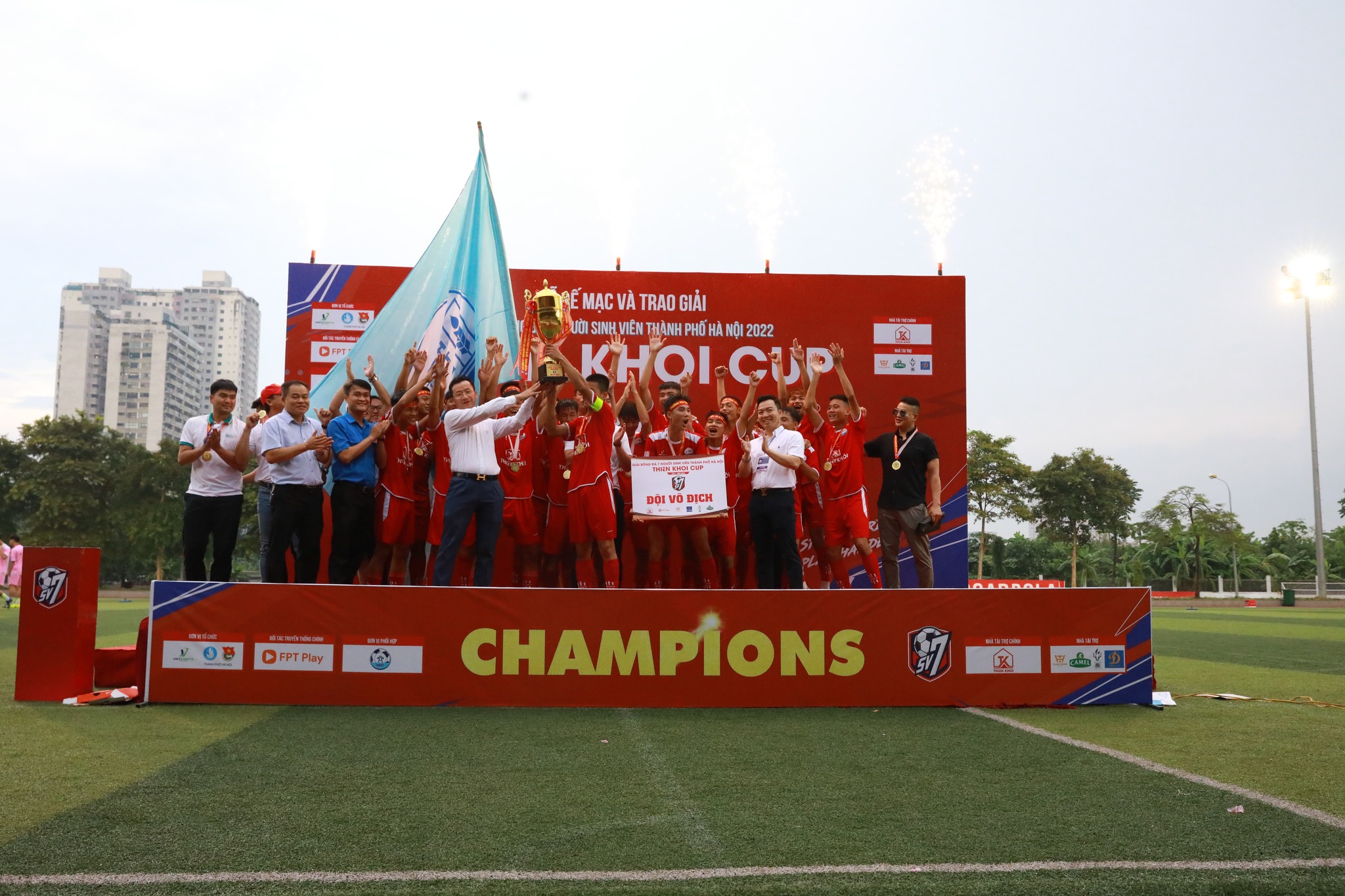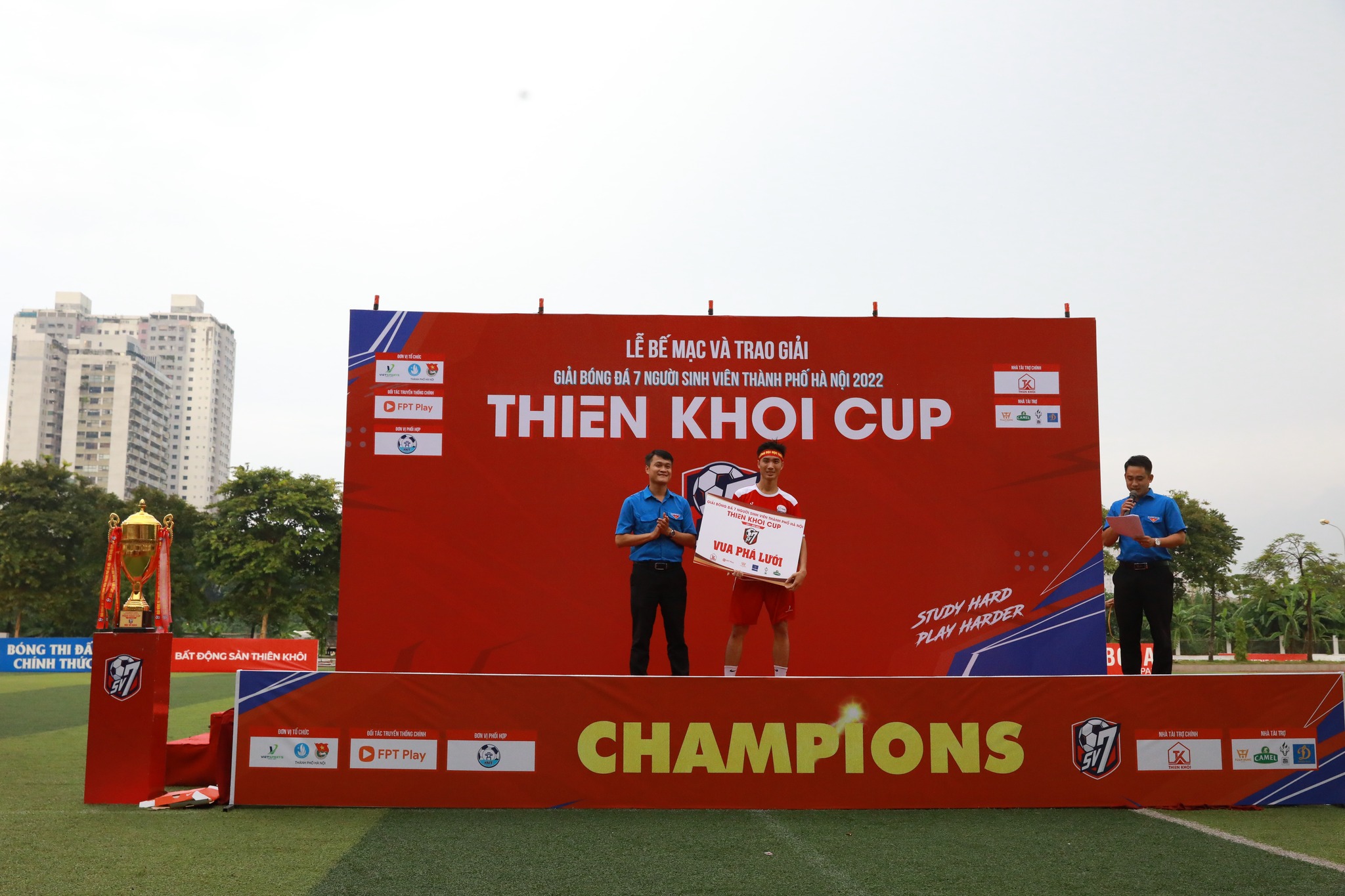 Dự Lễ bế mạc và trận chung kết Giải Bóng đá nam 7 người sinh viên TP. Hà Nội năm 2022 – Thiên Khôi Cup có ông Phạm Xuân Tài – Phó Giám đốc Sở Văn hóa Thể thao Hà Nội; ông Dương Minh Tiến – Phó phòng Quản lý thể thao, Sở Văn hóa Thể thao Hà Nội; ông Nguyễn Thành Dũng – Chủ tịch Công ty cổ phần bất động sản Thiên Khôi – nhà tài trợ chính; đồng chí Nguyễn Mạnh Linh – Phó Chủ tịch Hội Sinh viên Hà Nội…