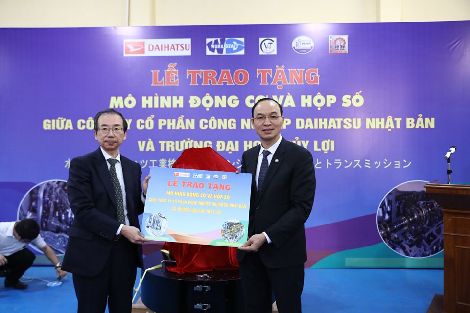 Tại đây, Công ty cổ phần Công nghiệp Daihatsu Nhật bản đã trao cho Khoa Cơ khí Trường Đại học Thuỷ lợi mô hình hộp số KF và động cơ CVT.