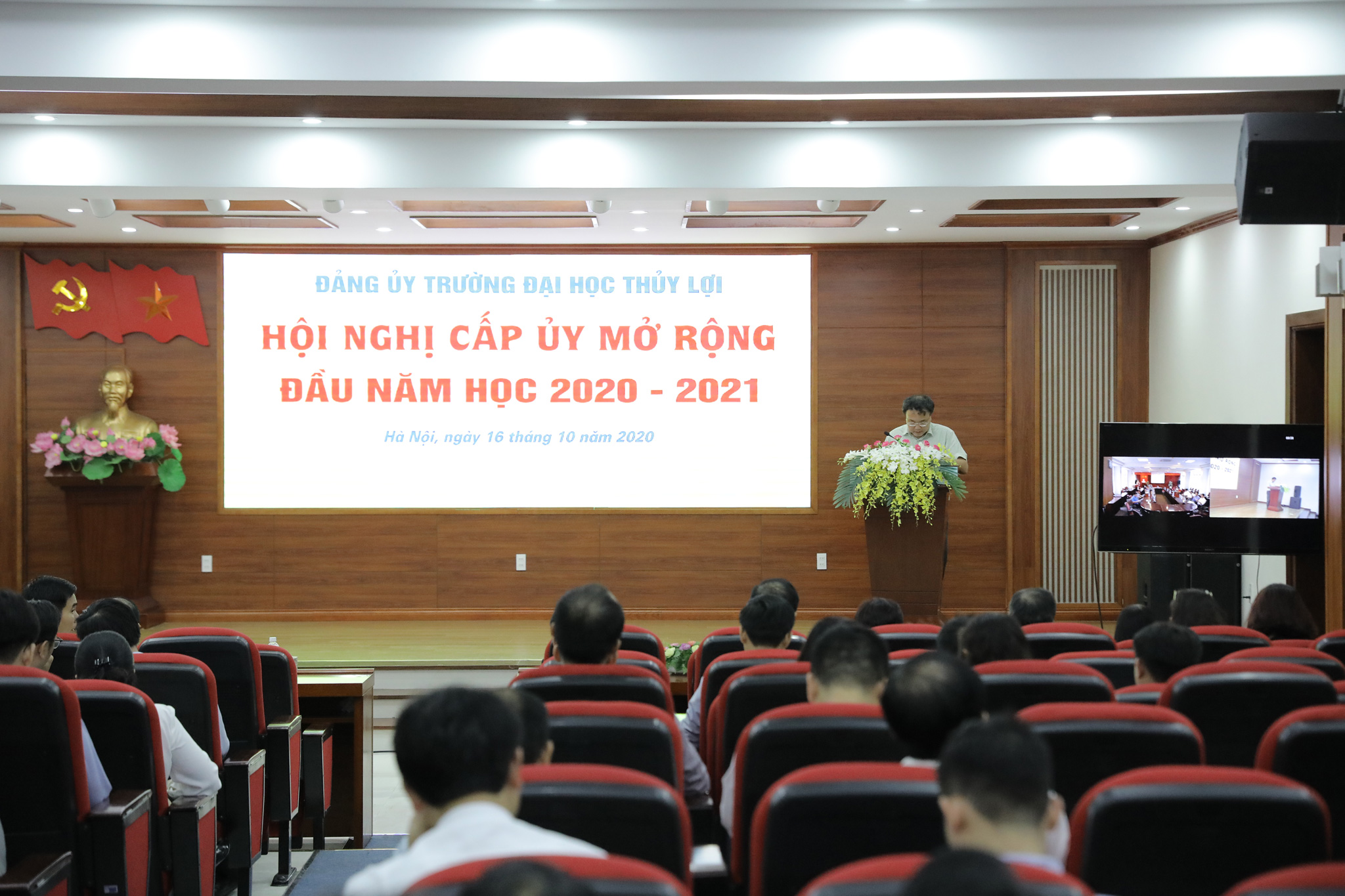 Tính đến hết tháng 9/2020, Đảng bộ Trường có 8 đảng bộ bộ phận và 16 chi bộ trực thuộc Đảng bộ Trường Đại học Thủy lợi. Toàn Đảng bộ có tổng số 55 chi bộ và 669 đảng viên. Đánh giá chung tại Hội nghị cấp ủy mở rộng đầu năm học 2020-2021 diễn ra chiều ngày 16/10 tại Hội trường T35 (trực tuyến tại đầu cầu phân hiệu miền nam) cho thấy, toàn Đảng bộ đã rất chủ động thực hiện các nhiệm vụ trọng tâm trong điều kiện dịch bệnh Covid19 diễn ra trên toàn thể giới diễn biến phức tạp.