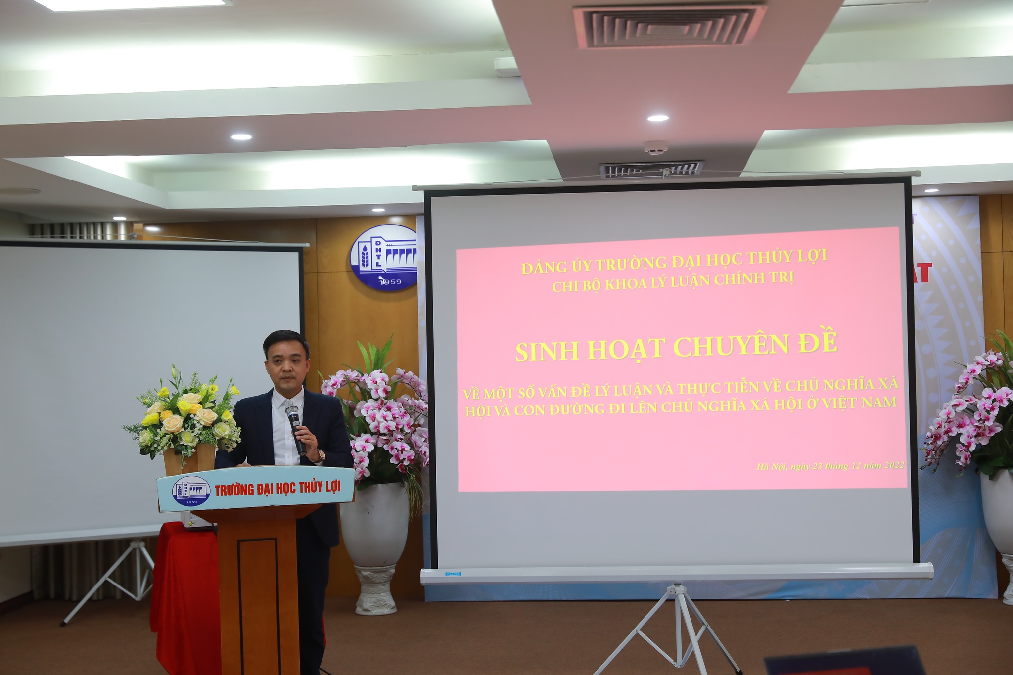 Triển khai Hướng dẫn số 03-HD/ĐUK, ngày 9/6/2022 của Đảng ủy Khối các trường Đại học, Cao đẳng Hà Nội và thực hiện Kế hoạch của Đảng ủy trường Đại học Thủy lợi về hướng dẫn triển khai đợt sinh hoạt chính trị, tư tưởng về một số vấn đề lý luận và thực tiễn về chủ nghĩa xã hội và con đường đi lên chủ nghĩa xã hội ở Việt Nam; Ban Tuyên giáo Đảng ủy và Chi bộ khoa Lý luận chính trị tổ chức buổi sinh hoạt chuyên đề với chủ đề: “Một số vấn đề lý luận và thực tiễn về chủ nghĩa xã hội và con đường đi lên chủ nghĩa xã hội ở Việt Nam”.
