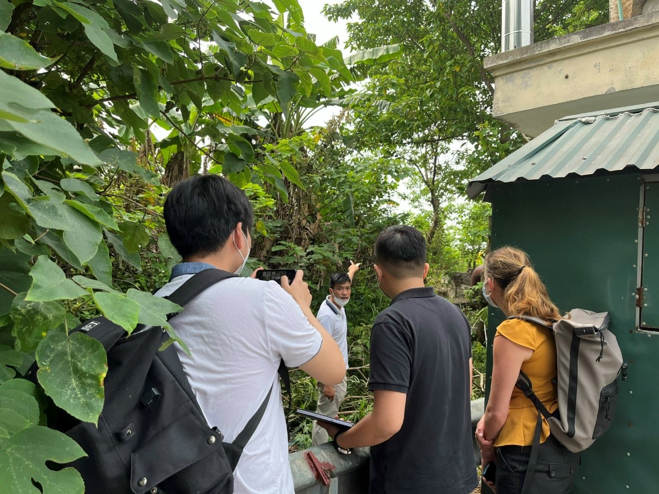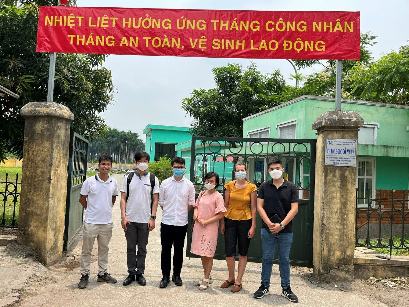 Chủ nhiệm đề tài phía Bỉ (GS. Patrick Willems) và phía Việt Nam (TS. Nguyễn Thanh Thủy) cùng sinh viên đi thăm quan trạm bơm Cổ Nhuế