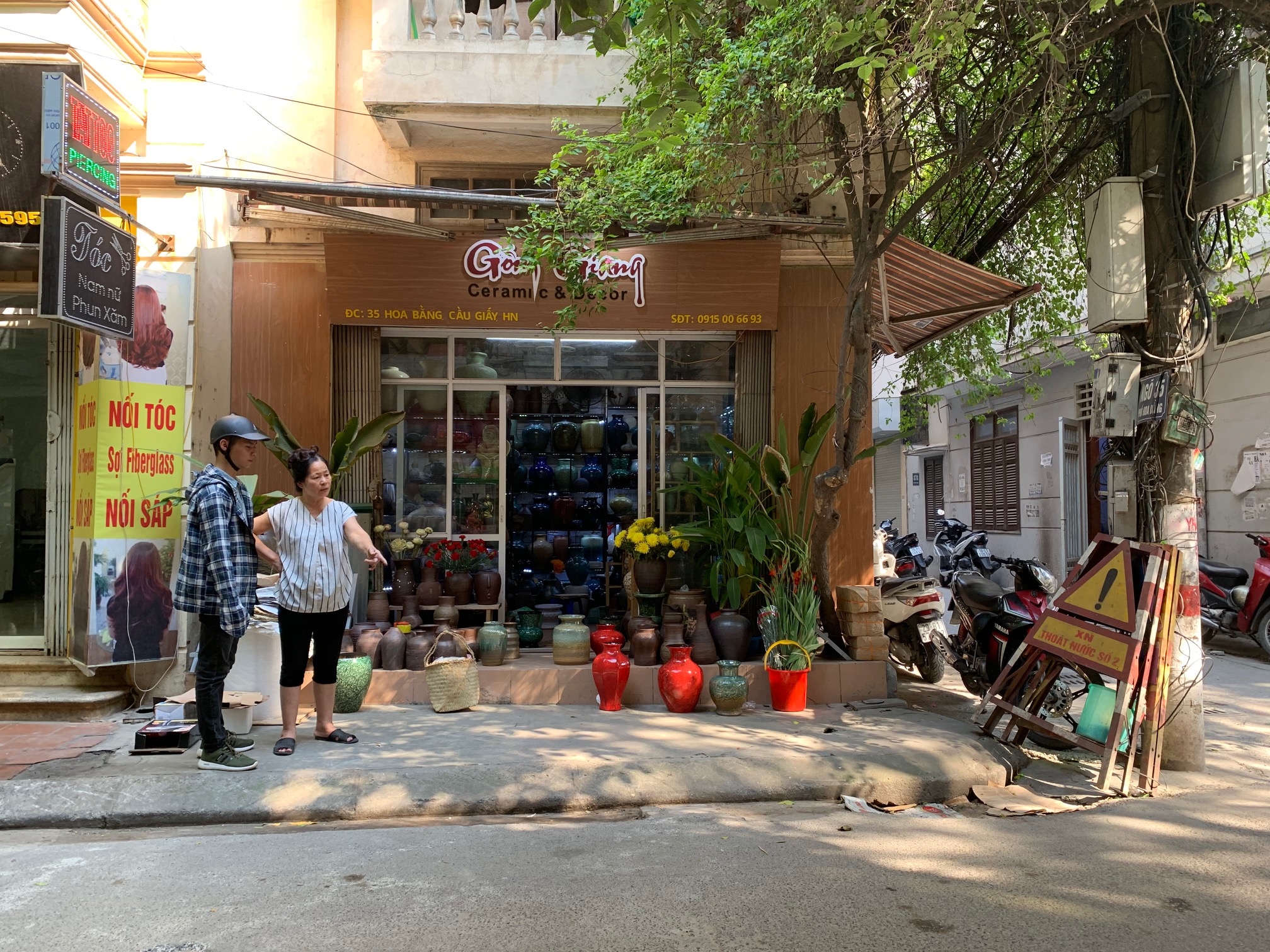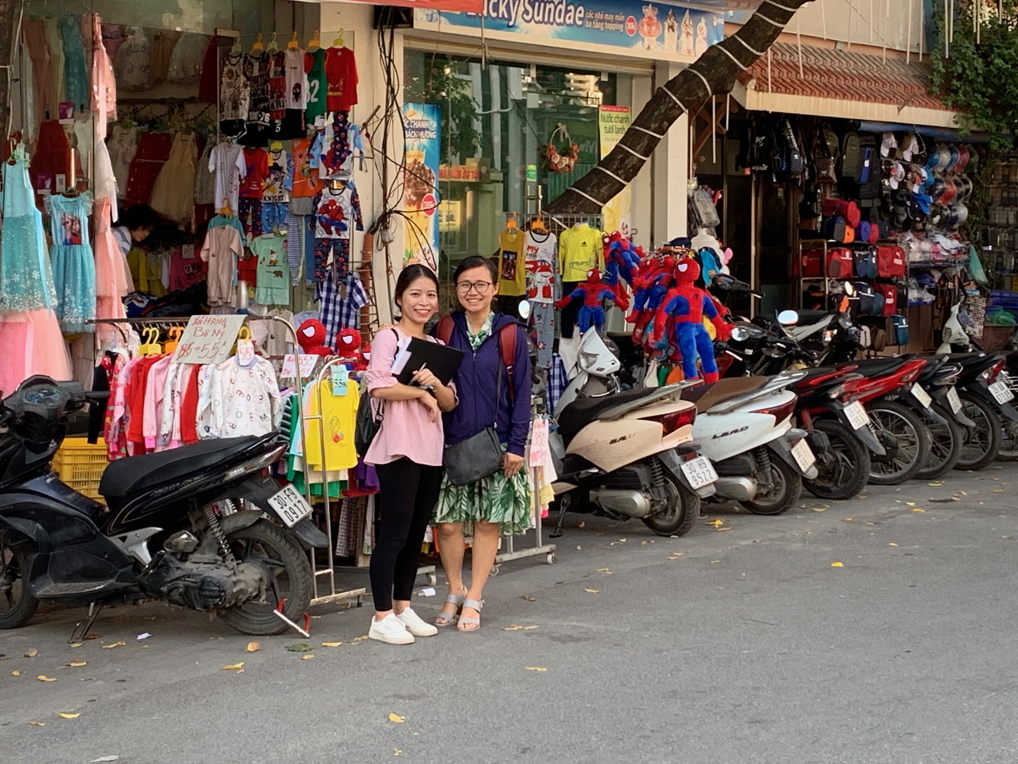 Nhóm thực hiện đề tài phối hợp cùng với cán bộ công ty tiêu thoát nước Hà Nội đi khảo sát trên tuyến phố Hoa Bằng