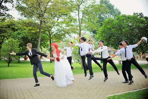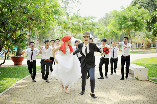 Chú rể nắm tay cô dâu “cao chạy xa bay”
