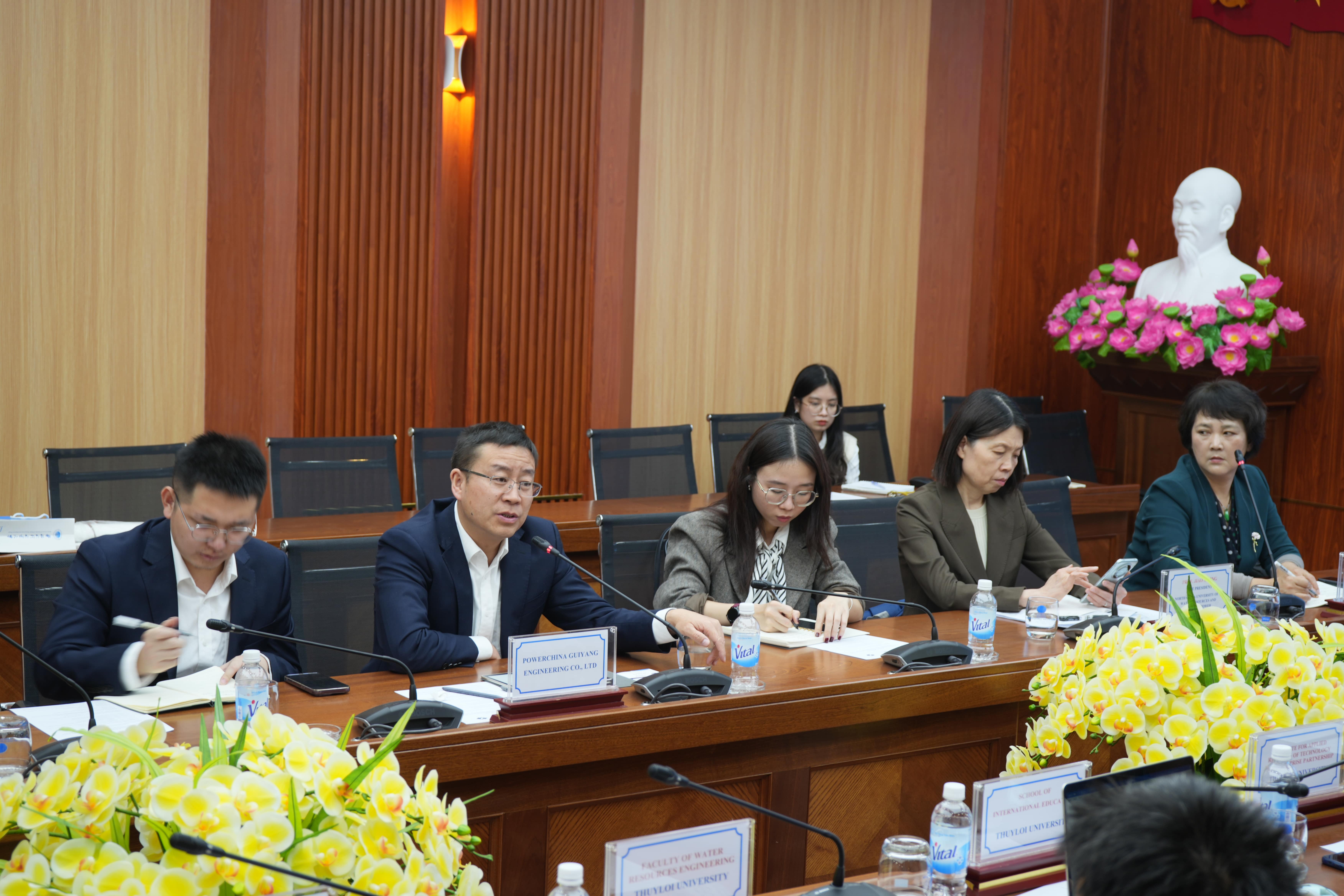 Tại buổi làm việc, hai bên đã thảo luận về khả năng tăng cường hợp tác trong lĩnh vực nghiên cứu khoa học, đào tạo sinh viên và giải quyết các vướng mắc liên quan đến các dự án chung. NCWU chia sẻ mong muốn phát triển theo hướng bền vững môi trường, tăng cường ứng dụng công nghệ mới trong năng lượng gió, mặt trời và thủy điện. GS. Jiao Aiping cũng chia sẻ về các chương trình trao đổi văn hóa, tham quan các công trình thủy lợi nổi tiếng tại Trung Quốc và sẵn lòng chào đón sinh viên Trường Đại học Thủy lợi tham gia.