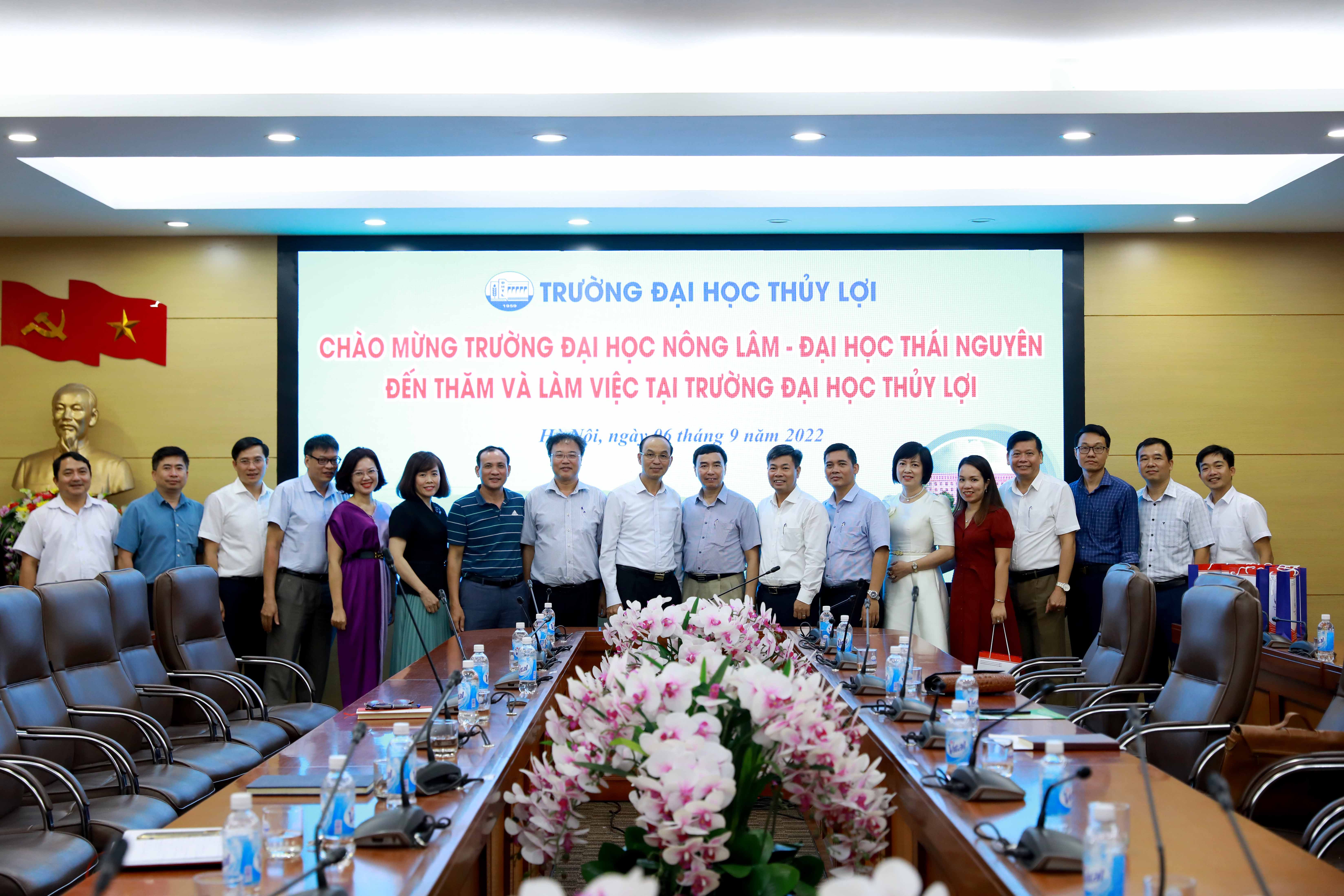 Chúc mừng những thành tựu mà Trường Đại học Thủy lợi đạt được, GS.TS. Nguyễn Thế Hùng – Bí thư Đảng uỷ, Chủ tịch Hội đồng Trường Đại học Nông lâm – Đại học Thái Nguyên cùng bày tỏ kỳ vọng, hai trường sẽ có nhiều cơ hội gặp gỡ, chia sẻ kinh nghiệm; đặc biệt trong việc phát triển đội ngũ giảng viên cơ hữu có trình độ cao; triển khai các hoạt động khoa học công nghệ trong lĩnh vực nông nghiệp mang tính chuyển đối số…
