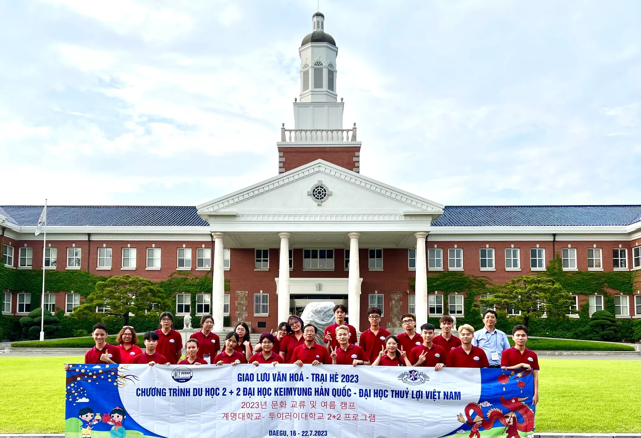 Đoàn giảng viên và sinh viên Trường ĐHTL trong phiên khai mạc Chương trình Đoàn sinh viên của Trường Đại học Thuỷ lợi bao gồm 21 em là sinh viên các ngành Kỹ thuật cơ khí, Kinh tế và quản lý trong chương trình đào tạo 2+2 liên kết với Trường Đại học Keimyung, Hàn Quốc. Phụ trách đoàn đi gồm có TS. Nguyễn Ngọc Huyên – Phó Trưởng Khoa Cơ khí là Trưởng đoàn, cùng TS. Lê Văn Chính – Phó Trưởng Khoa Kinh tế và Quản lý và ThS Phạm Thị Hạnh, Khoa Cơ Khí. Chương trình giao...