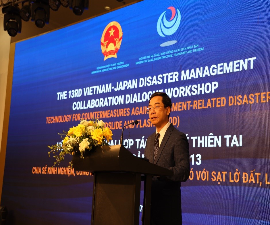 Ông Nguyễn Trường Sơn, Phó Cục trưởng Cục Quản lý đê điều và Phòng, chống thiên ta và Ông Shin ISHIKAWA, Thư ký Bộ trưởng – Bộ Đất đai, Hạ tầng, Giao thông và Du lịch Nhật Bản chủ trì Hội thảo. Phát biểu tại Hội thảo, ông Nguyễn Trường Sơn, Phó Cục trưởng Cục Quản lý đê điều và Phòng chống thiên tai, Bộ Nông nghiệp và Môi trường, cho biết, thiên tai đang ngày càng cực đoan hơn, với tần suất cao hơn và tác động khốc liệt hơn.