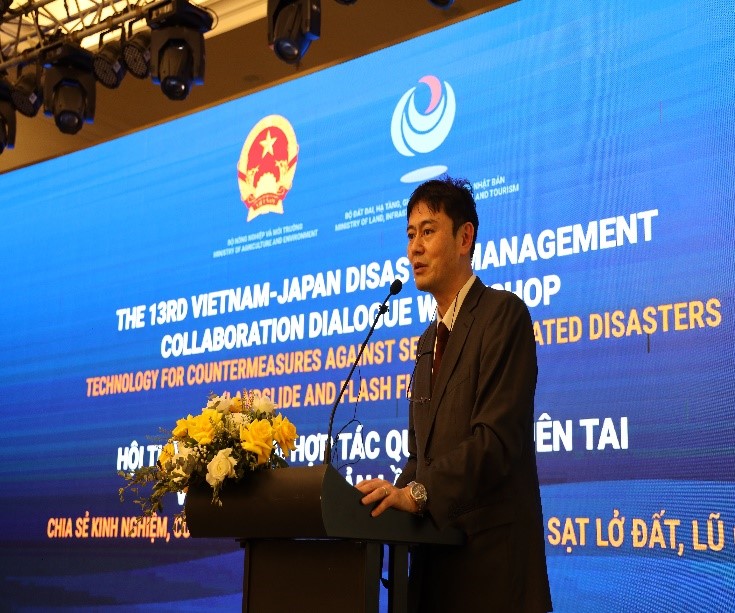 Tại Hội thảo ông Takao Yamakoshi, Bộ Đất đai, Cơ sở hạ tầng, Giao thông và Du lịch (MLIT), Nhật Bản đã giới thiệu về Hệ thống cảnh báo sớm, lập bản đồ rủi ro và tăng cường nhận thức về thiên tai trầm tích ở Nhật Bản.