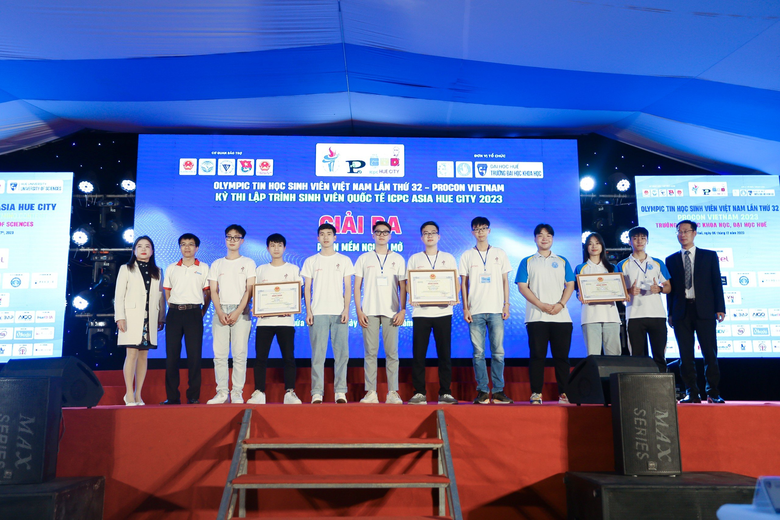 Tham dự Kỳ thi Olympic Tin học sinh viên Toàn quốc, đội tuyển của Trường Đại học Thủy lợi do thầy Trương Xuân Nam – Bộ môn Tin học và KTTT làm trưởng đoàn có 13 sinh viên dự thi ở 4 nội dung: Chuyên tin học, Không chuyên tin học (dành cho sinh viên không chuyên ngành CNTT và sinh viên năm nhất ngành CNTT), phần mềm nguồn mở và ICPC chuyên tin.