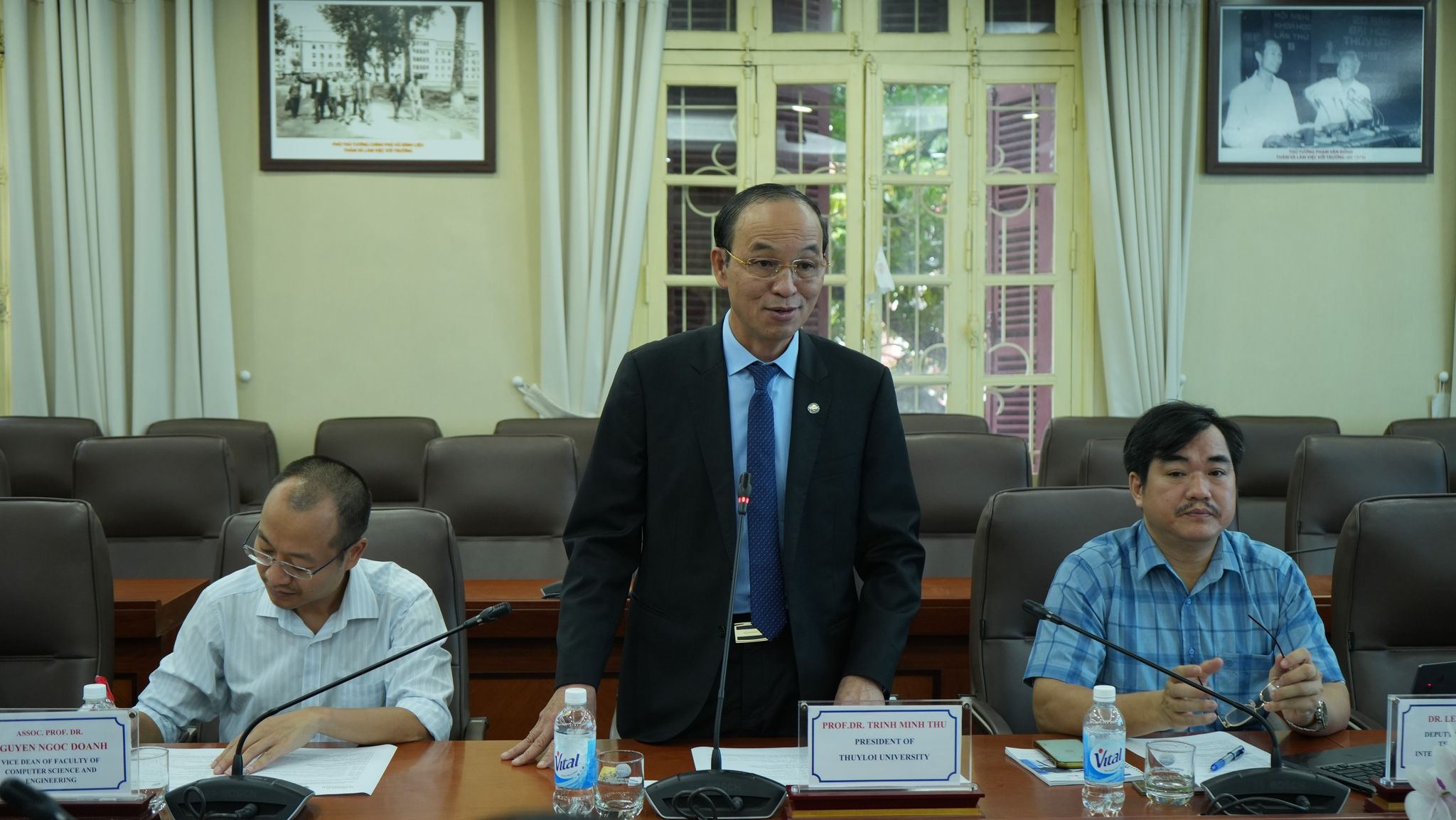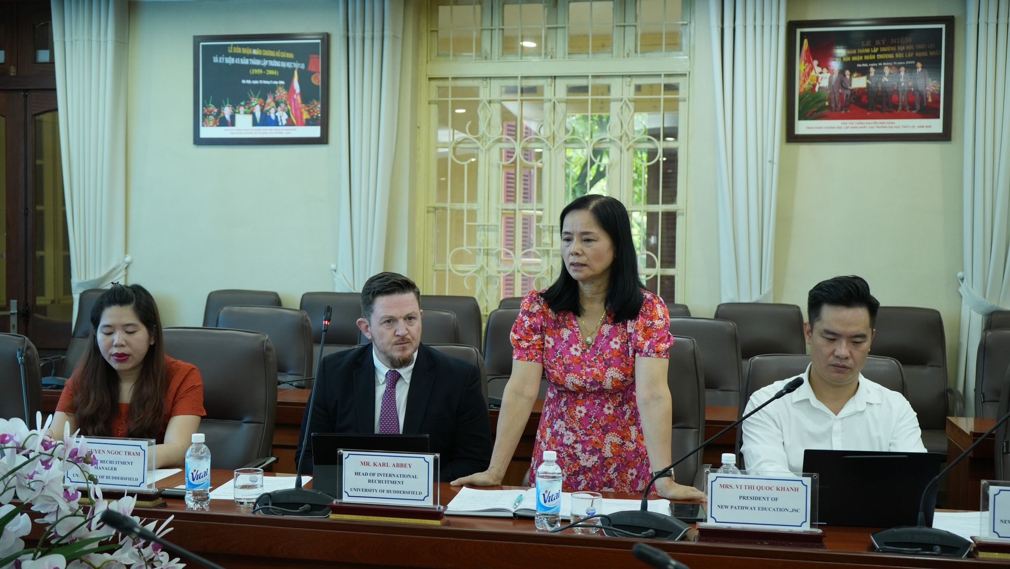 Tại buổi làm việc, GS. TS Trịnh Minh Thụ phát biểu chào mừng đoàn ĐH Huddersfield và cảm ơn các bên đã tích cực trao đổi hợp tác đào tạo trong khuôn khổ nội dung MOU đã được kí kết. Là một trường Đại học tổng hợp gồm nhiều khoa như: Kinh tế, Máy tính, Kỹ sư, Khoa học, Kiến trúc và môi trường xây dựng…, đây là cơ hội rất thuận lợi cho sinh viên của Trường Đại học Thủy lợi được chuyển tiếp sang Đại học Huddersfield học tiếp và nhận bằng cử nhân hoặc thạc sĩ của Đại học Huddersfield với nhiều học bổng hấp dẫn như Chương trình 2+2, 3+1 hay 3+1+1 (học thêm một năm sau đại học để nhận bằng Thạc sỹ) cùng nhiều ưu đãi khi sinh viên sang du học tại Huddersfield. ĐH Huddersfield có liên kết chặt chẽ với nhiều doanh nghiệp để hỗ trợ cho sinh viên tìm kiếm cơ hội trải nghiệm thực tế vì vậy việc vừa học vừa làm là một cơ hội rất tốt cho sinh viên khi học tại Hudderfield.