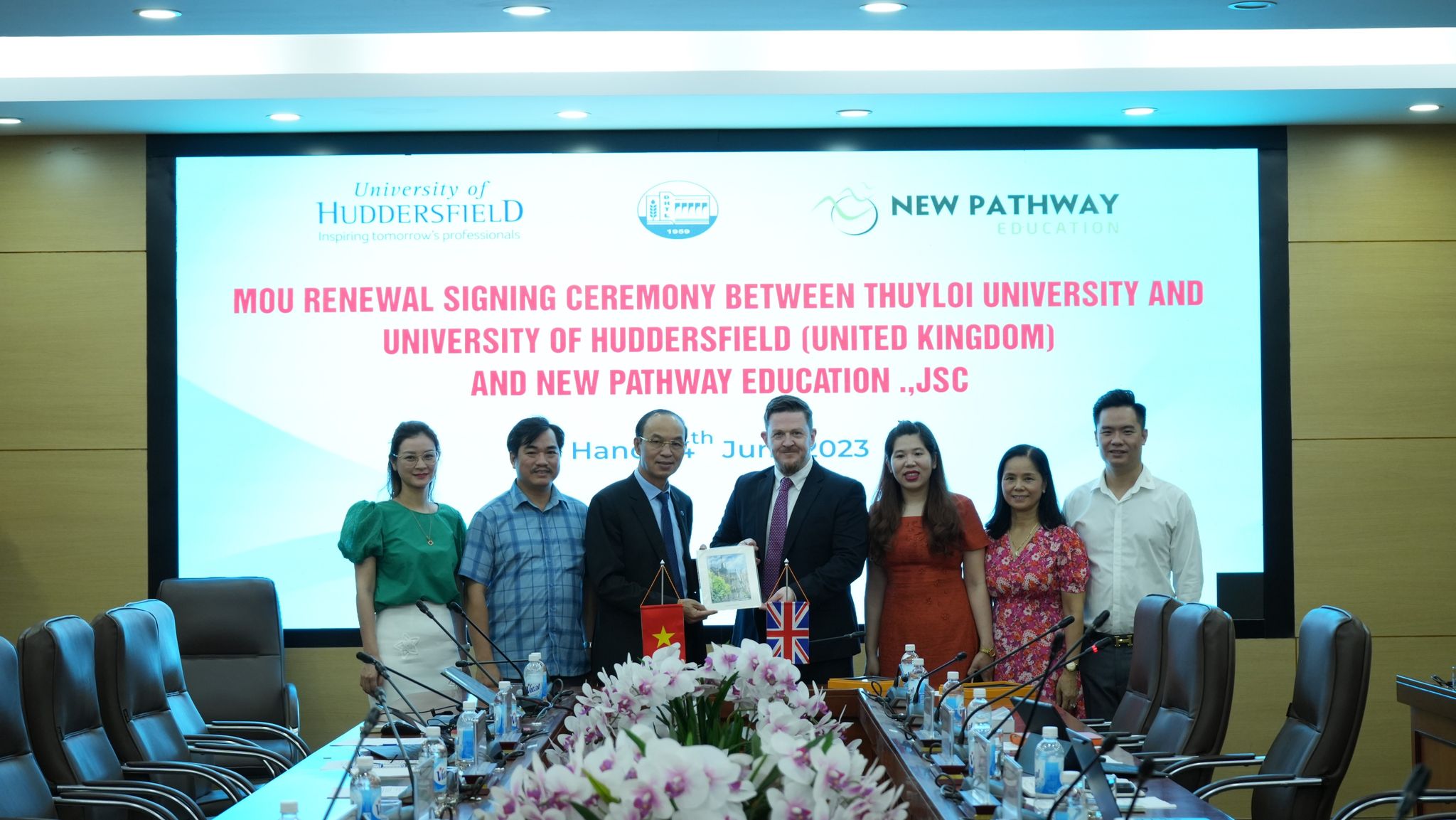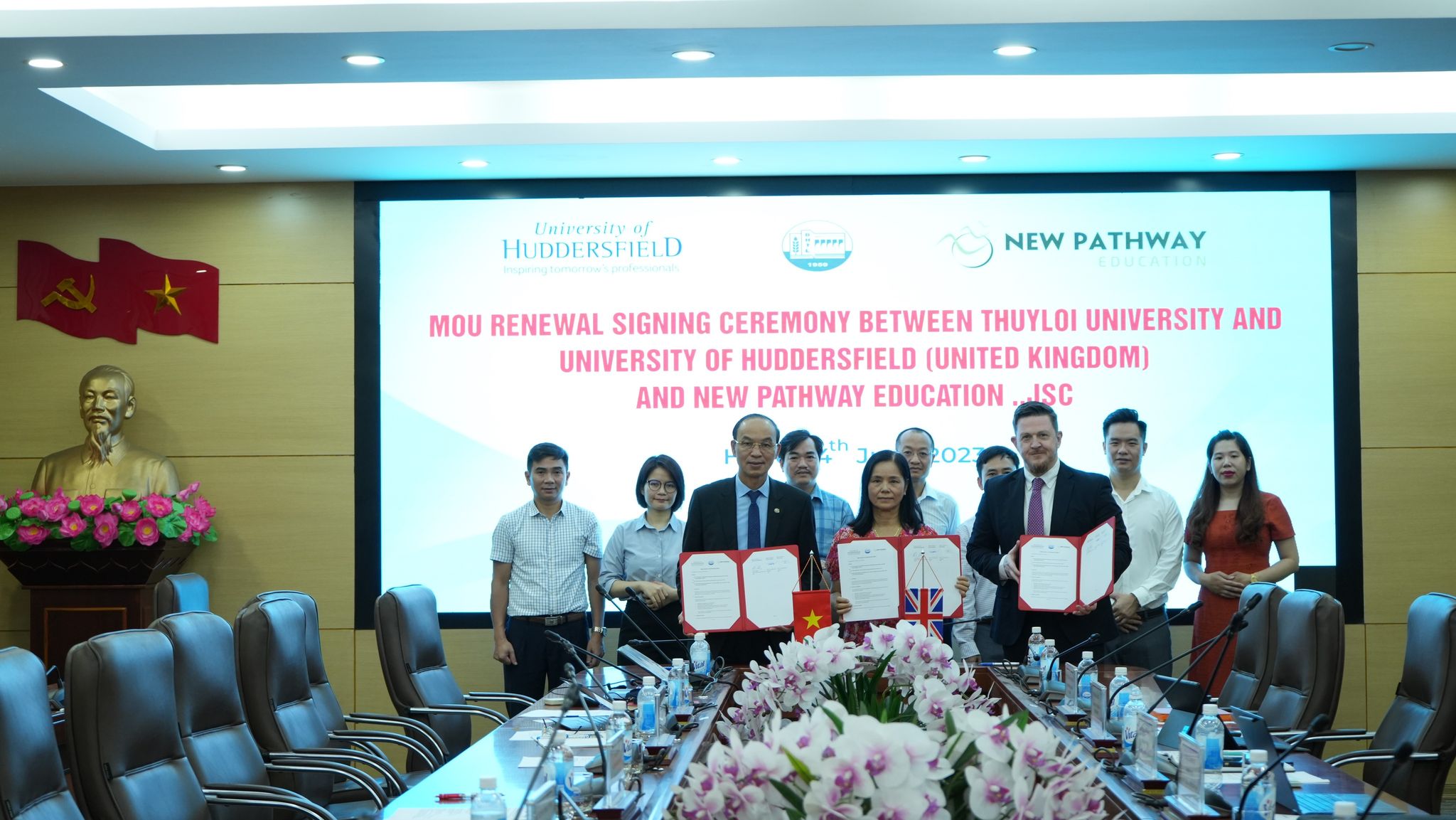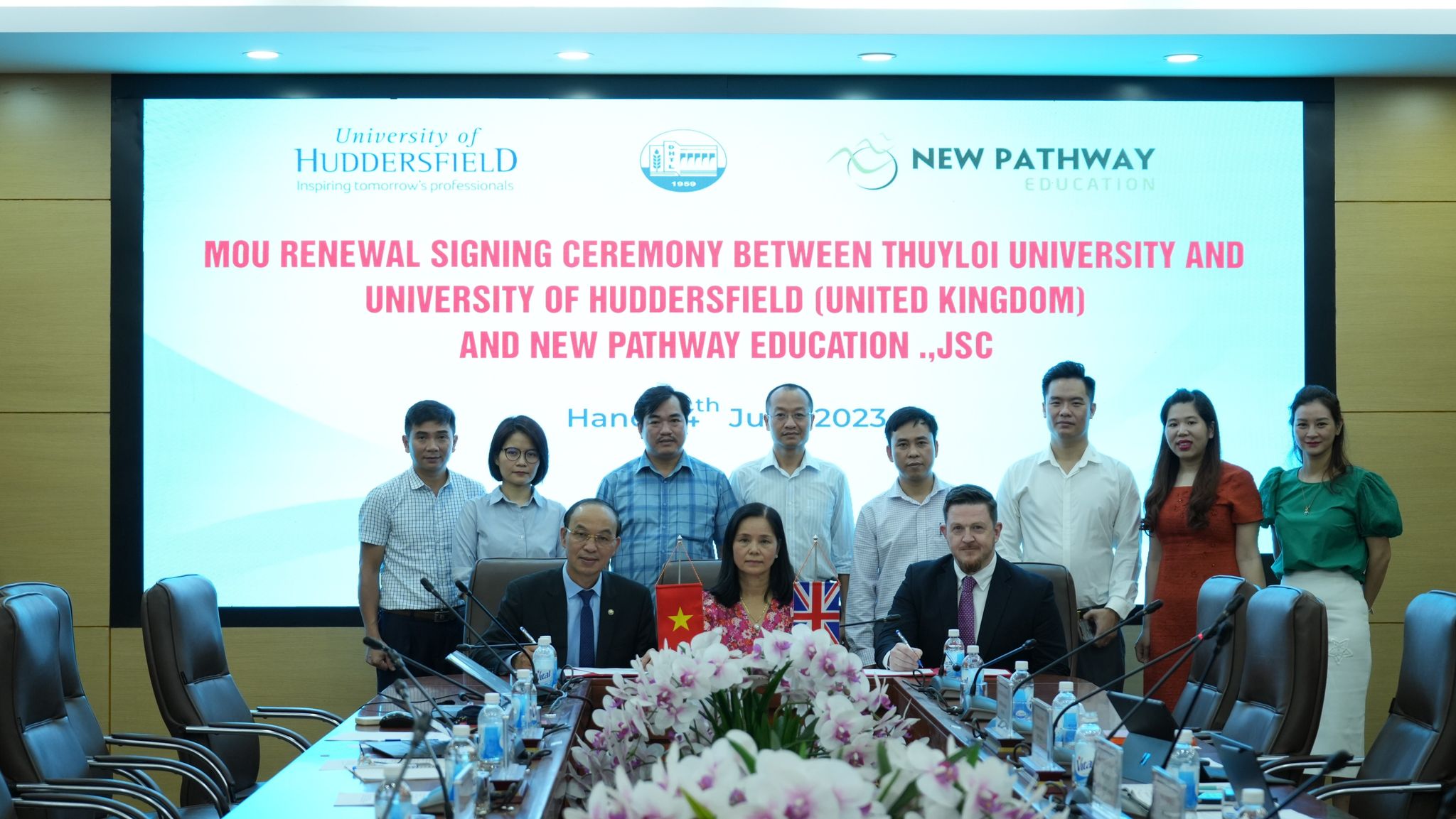 Trường Đại học Thủy lợi đã chính thức ký kết Biên bản ghi nhớ (MoU) với trường Đại học Huddersfield, Anh Quốc và Công ty New Pathway Education từ tháng 7/2018. Đây là trường Đại học lớn và danh tiếng, thành lập năm 1825 tại trung tâm thành phố Huddersfield, Anh Quốc.