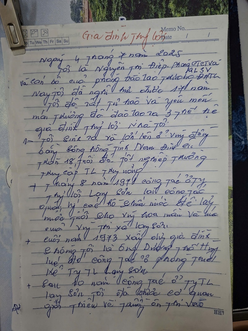 The Handwritten Letter “Thuyloi Family” by Ms. Nguyen Thi Diep