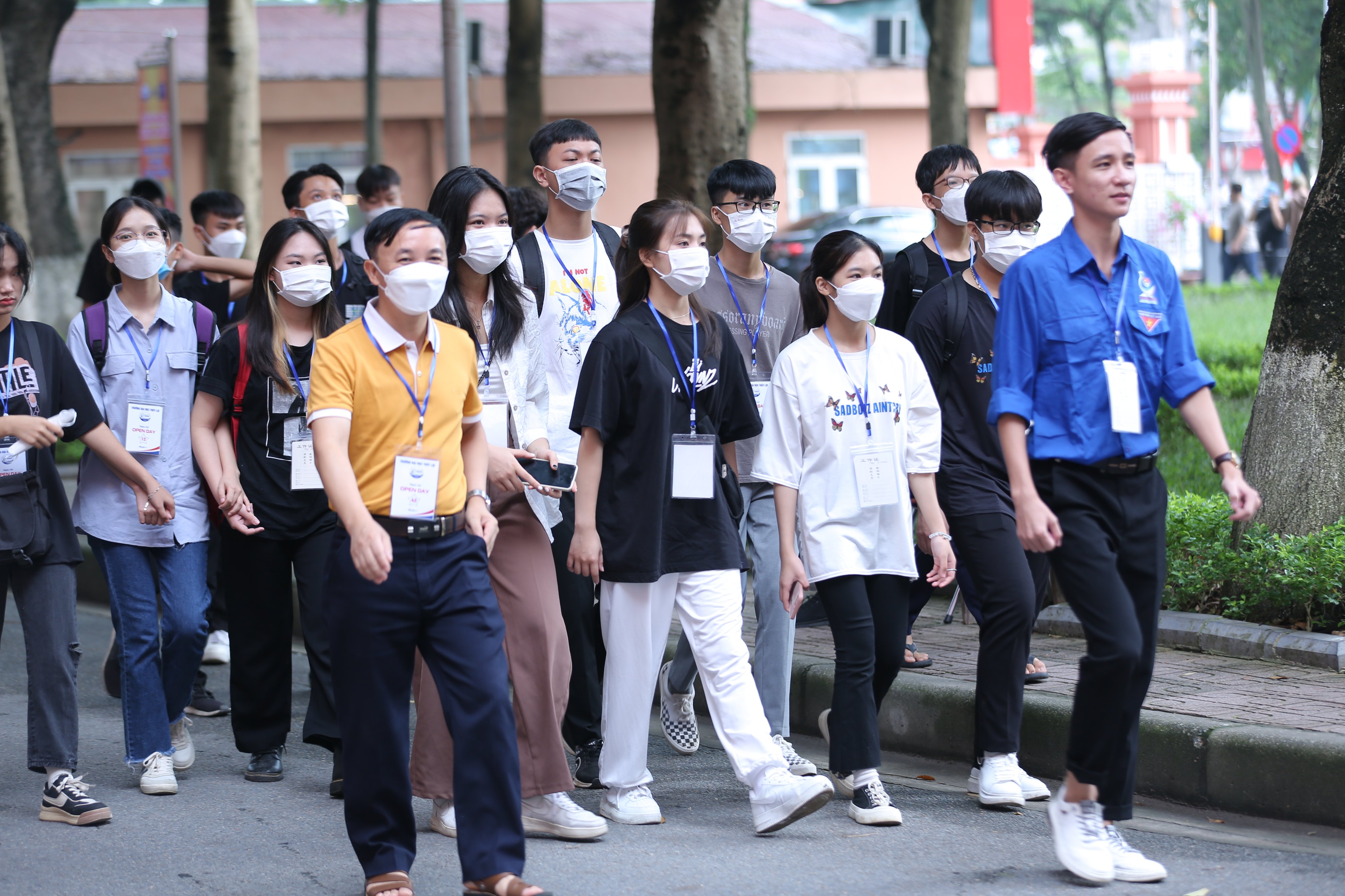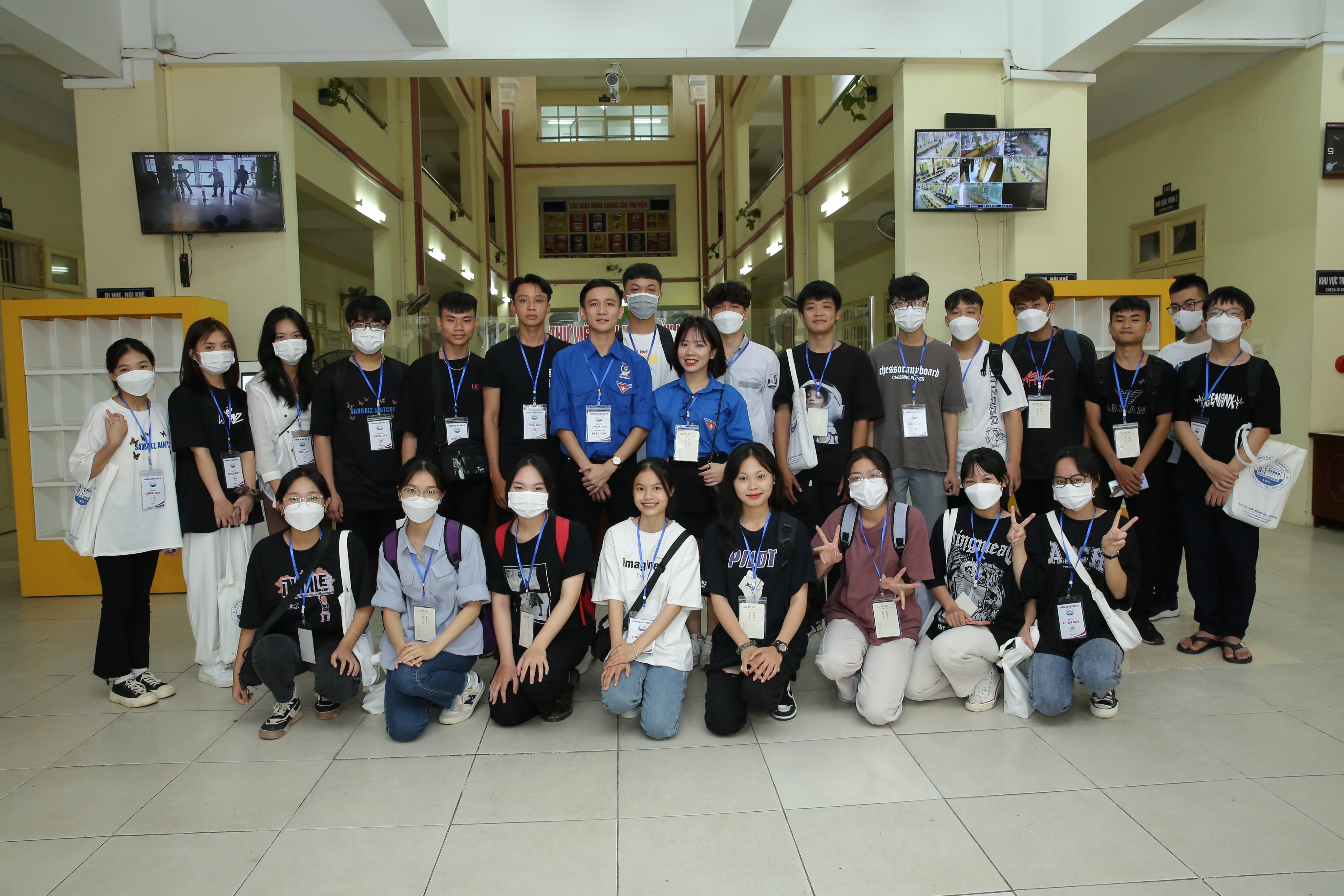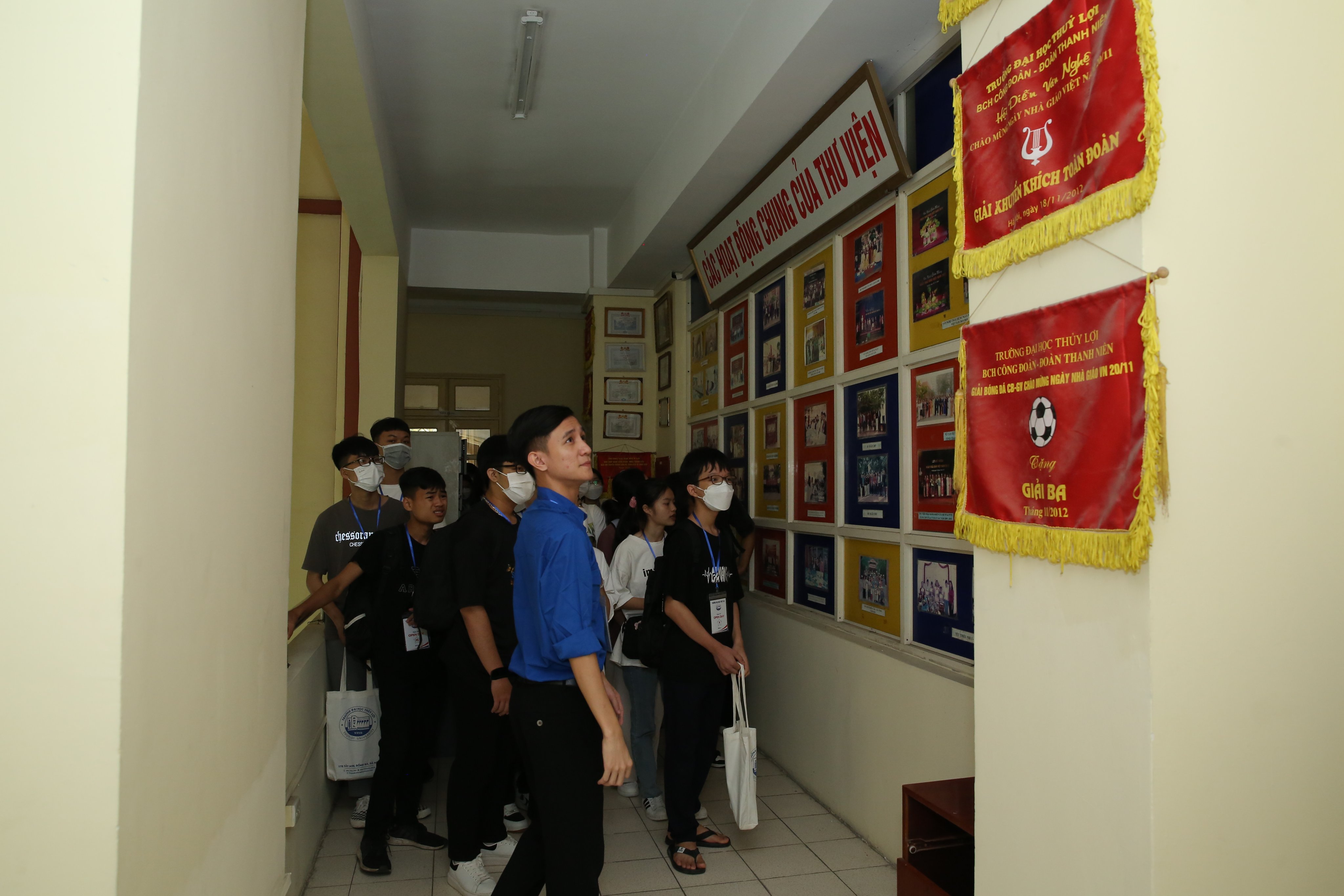 Các em thí sinh được nhận quà và tham quan, khám phá Trường Đại học Thủy lợi qua sự hướng dẫn của tình nguyện viên