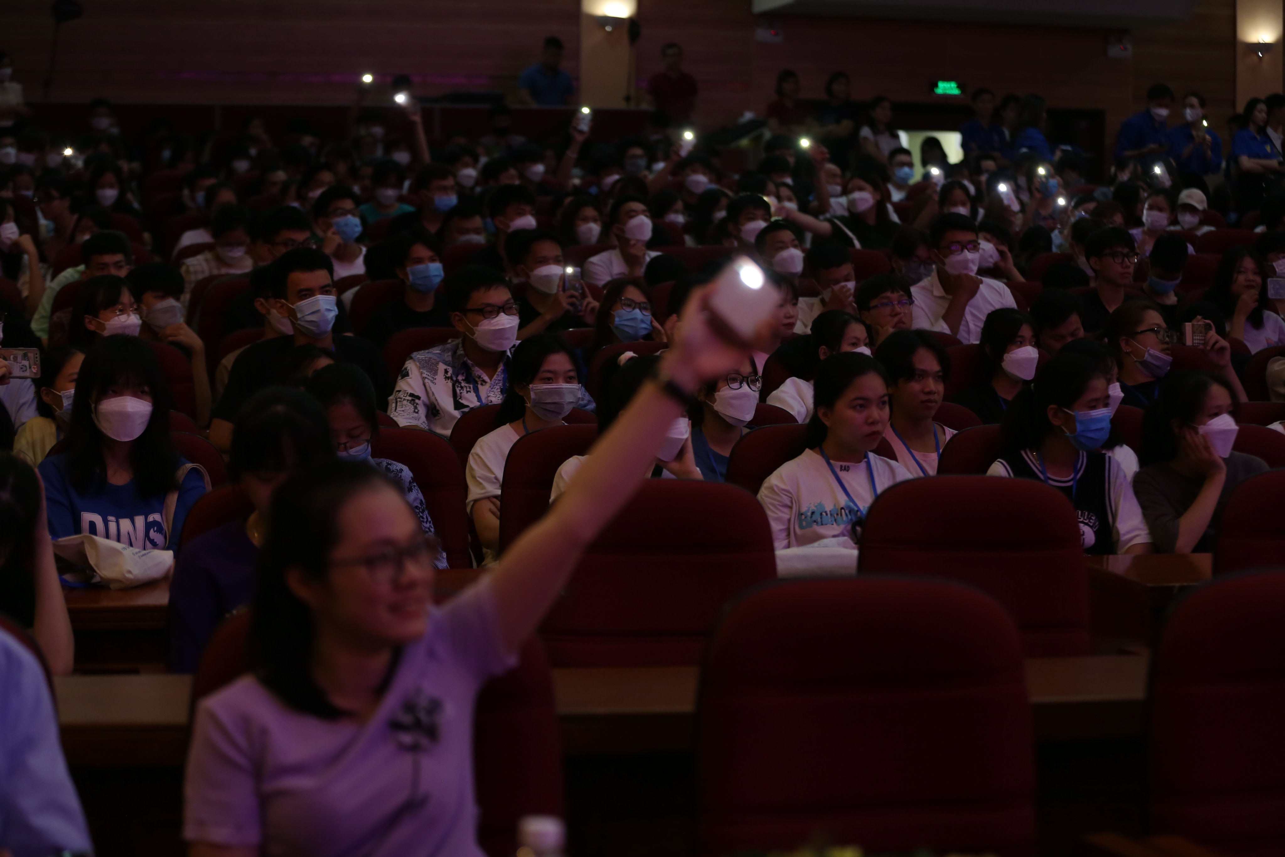 Bầu không khí sôi động qua phần trình diễn của nhóm nhạc OPLUS và các tiết mục văn nghệ của Đội văn nghệ Nhà trường