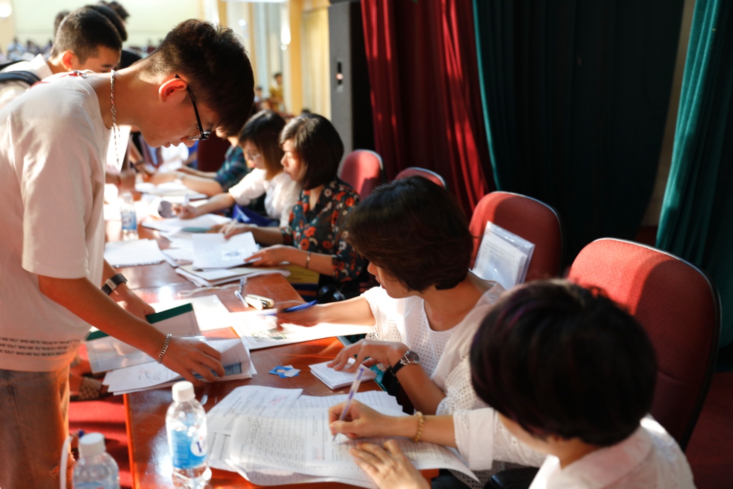 Nhằm tạo điều kiện thuận lợi cho các tân sinh viên nhập học, Trường Đại học Thủy lợi đã xây dựng kết hoạch, bố trí hội trường T45 để đón tiếp. Hàng chục cán bộ, chuyên viên các Phòng ban luôn đảm bảo trực thông suốt trong thời gian sinh viên nhập học; có mặt tại vị trí tư vấn và bàn tiếp nhận hồ sơ giúp các em có thể làm thủ tục nhanh chóng, hiệu quả. Bên cạnh đó, đội ngũ sinh viên tình nguyện được Nhà trường tập huấn kỹ năng đã hỗ trợ tân sinh viên và người nhà hoàn thiện các bước trong quy trình nhập học.