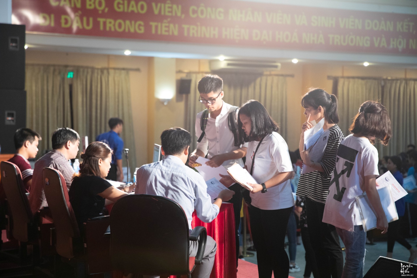 Hội trường T45 được sử dụng để đón sinh viên nhập học