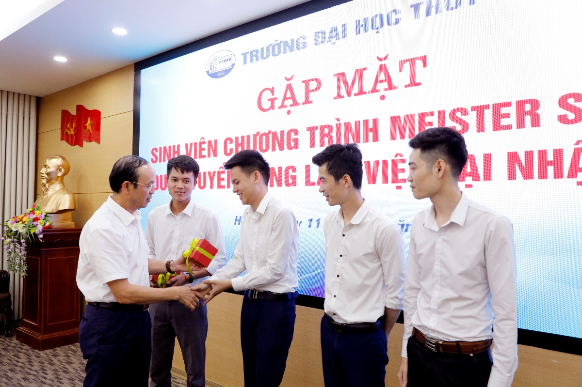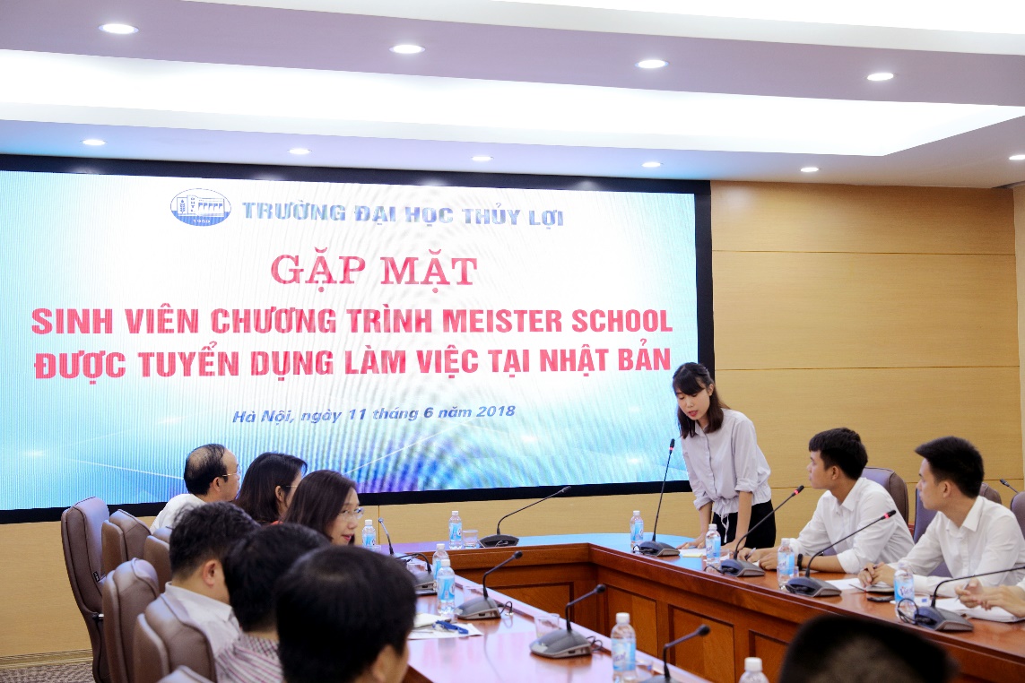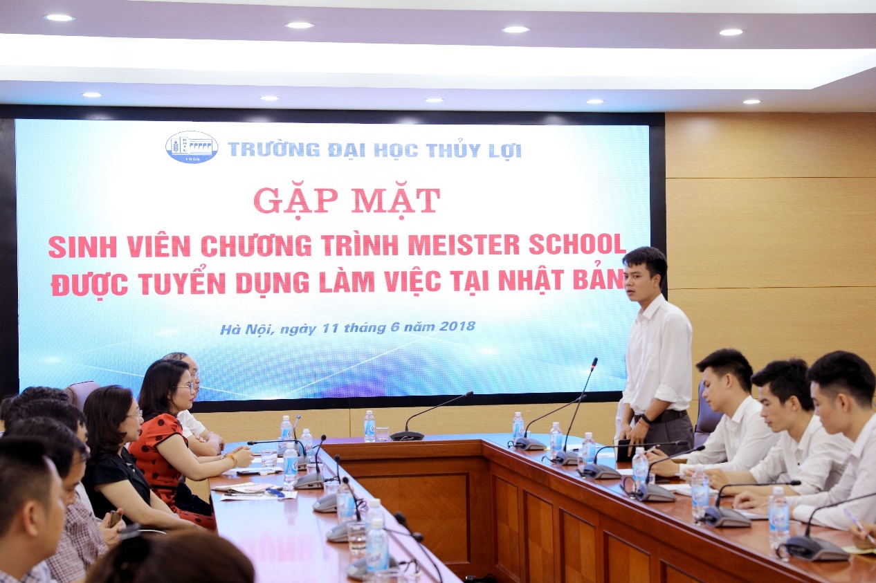 Chương trình Meister School được thành lập tại Trường Đại học Thủy lợi vào tháng 10/2017. Chương trình này do Công ty Minami Fuji, Nhật Bản khởi xướng từ năm 2014 và đã được triển khai tại nhiều trường đại học Việt Nam với mục tiêu đào tạo kỹ sư trẻ chất lượng cao làm việc tại Nhật Bản. Điểm đặc biệt của Chương trình là đào tạo hoàn toàn miễn phí cho các sinh viên và không có bất kỳ ràng buộc nào khi họ tham gia chương trình. Triển khai tại Trường ĐHTL được 8 tháng, Chương trình Meister School đã đạt được nhiều thành tựu đáng nể. Tính đến nay, đã có 5 sinh viên từ Meister Thủy lợi được ký hợp đồng chính thức với các công ty xây dựng Nhật Bản, trong đó một sinh viên đã sang Nhật làm việc từ tháng 3/2018.
