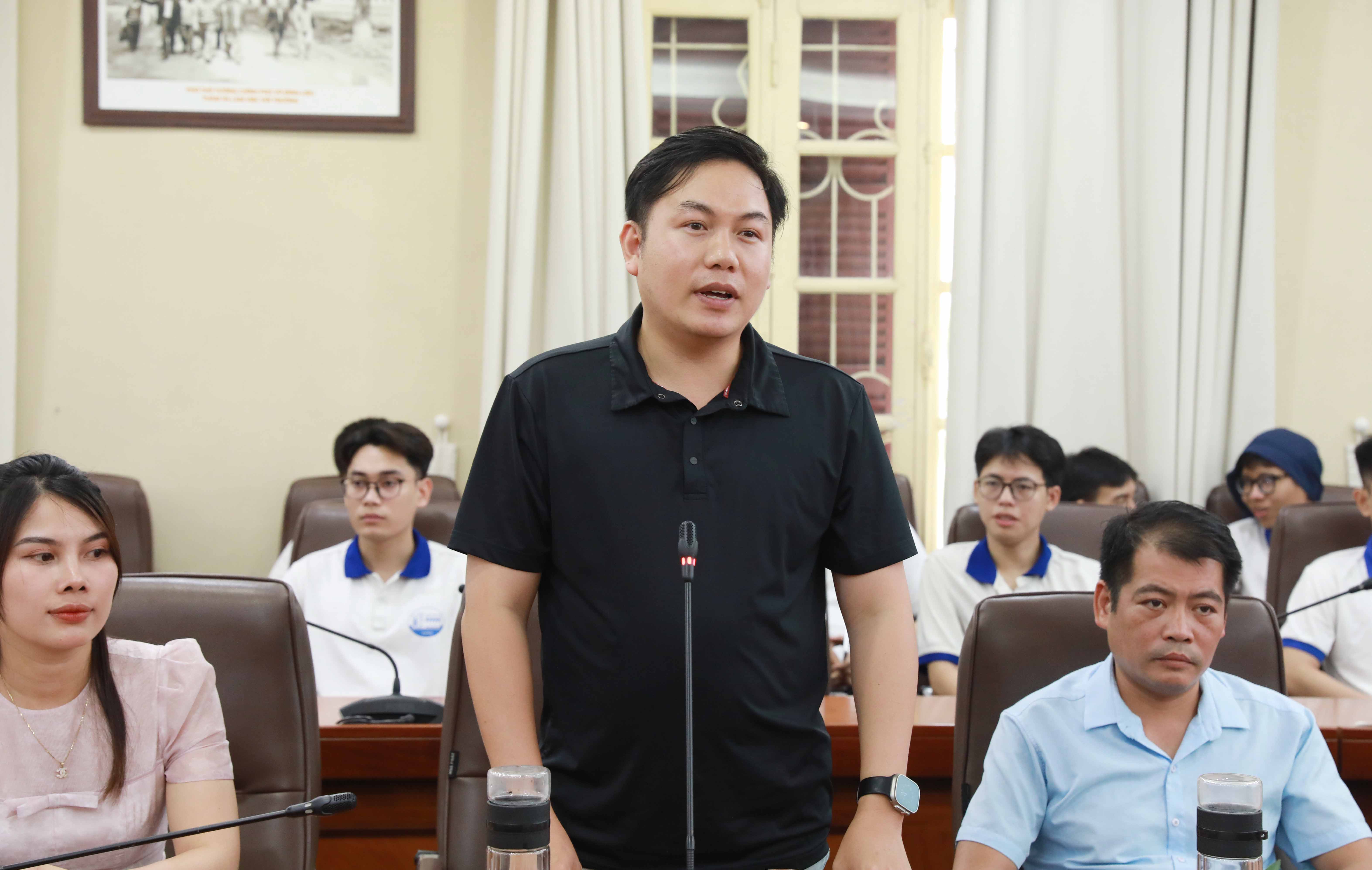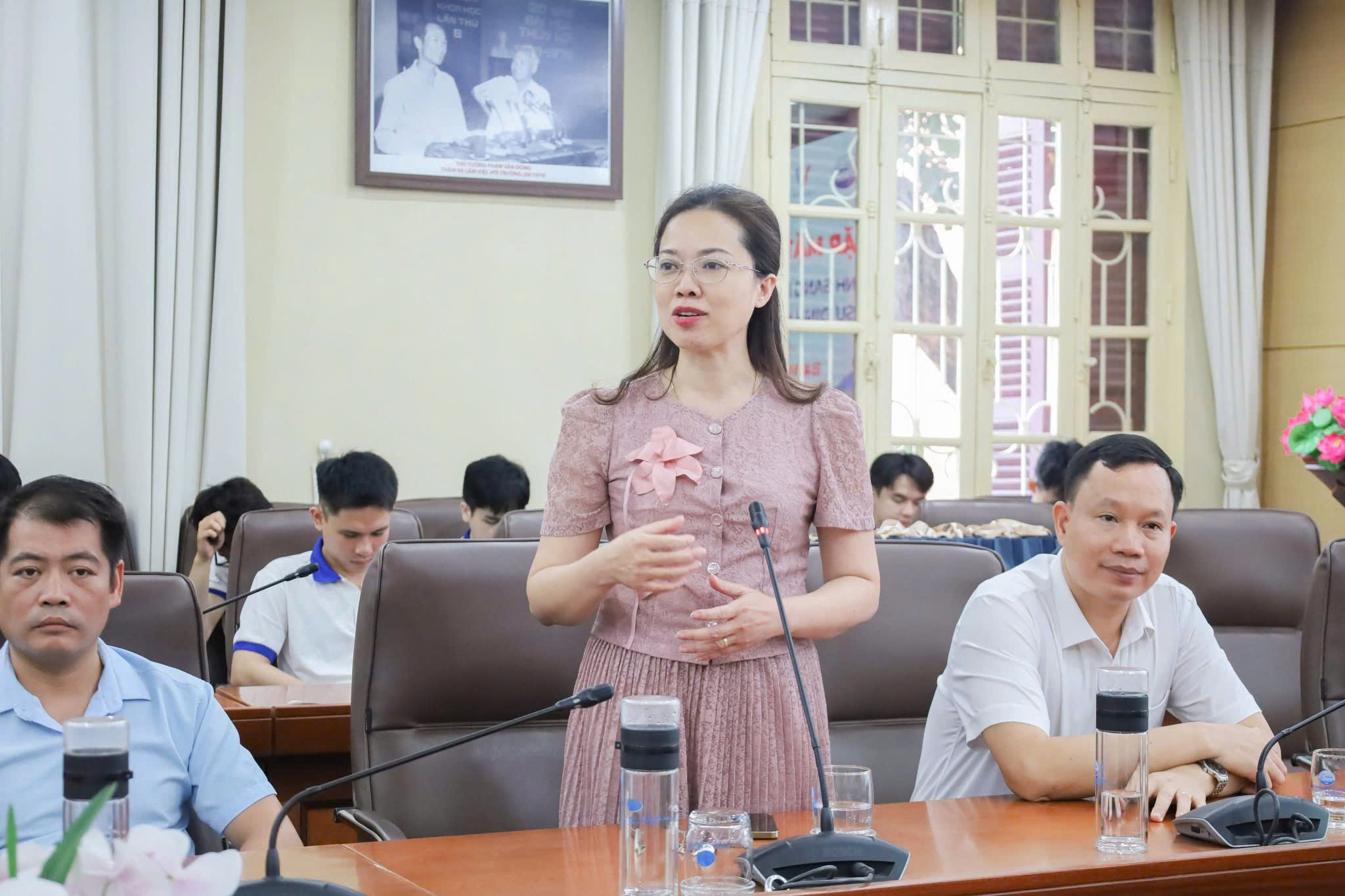 Ths Đặng Hương Giang – Trưởng Phòng Chính trị và Công tác sinh viên chia sẻ động viên các kỹ sư trước giờ xuất cảnh, khẳng định sự quan tâm của Nhà trường, của Viện trong công tác đào tạo, định hướng việc làm cho sinh viên