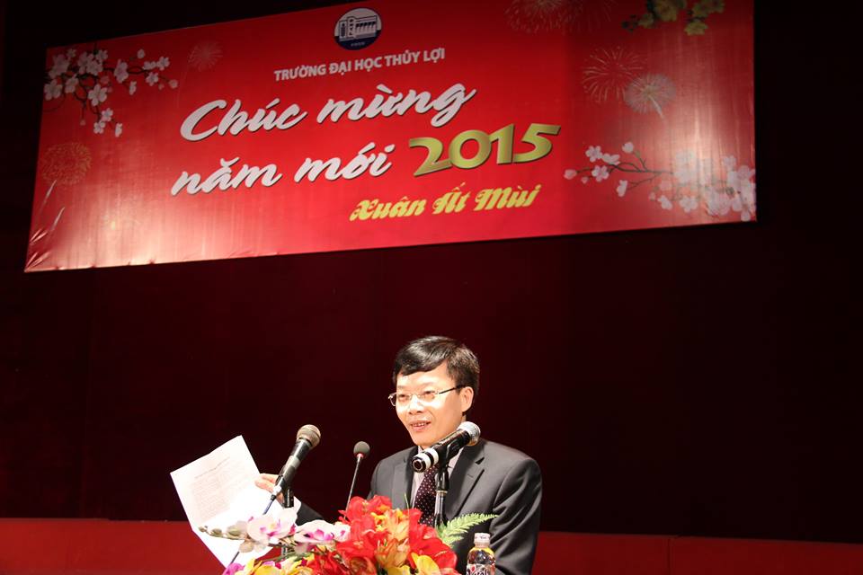 Thầy Hiệu trưởng vui mừng, phấn khởi gửi lời chúc mừng năm mới đến toàn thể các cán bộ viên chức đang công tác trong Nhà trường. Một năm đã qua, thầy và trò trường ĐHTL đã tổ chức thành công nhiều chương trình lớn đặc biệt là lễ kỉ niệm 55 năm ngày thành lập trường. Chương trình tổ chức tiết kiệm nhưng rất ấm cúng và được mọi người đánh giá rất cao. Bên cạnh đó, công tác tuyển sinh, đào tạo cơ bản đã đạt được chỉ tiêu, dự án xây dựng trường ở Hưng Yên cũng đang triển khai tốt. Cơ sở vật chất tại trường: Nhà trường đã tôn tạo được khu giảng đường cũ, khu vệ sinh cũng như các hệ thống cửa, điện, hành lang,.. Công tác khoa học và hợp tác quốc tế, tuy đầu tư công giảm xuống, vốn cho nghiên cứu khoa học từ ngân sách Nhà nước giảm nhưng trường ta vẫn có nhiều nghiên cứu tốt, ứng dụng vào thực tế,… Trong năm 2014, Nhà trường đã vinh dự có 2 giáo sư và 9 phó giáo sư được vinh danh.