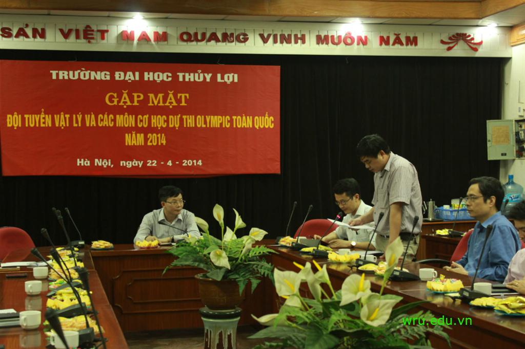 Chiều ngày 22/4/2014, tại phòng họp 223-A1, trường Đại học Thủy Lợi tổ chức buổi gặp mặt đội tuyển Vật lý và các môn Cơ học tham dự kì thi Olympic toàn quốc năm 2014. Buổi gặp mặt là dịp để Nhà trường động viên, khích lệ các sinh viên các đội tuyển, chuẩn bị cho các em có một tâm lý vững vàng trước khi lên đường đi thi.