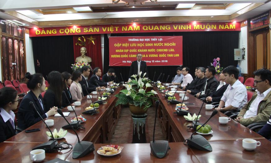 Nhân dịp Quốc khánh nước CHDCND Lào (02/12), Vương quốc Campuchia (09/11) và Vương quốc Thái Lan (05/12); Trường Đại học Thủy lợi tổ chức buổi gặp mặt các lưu học sinh. Đây là hoạt động hữu nghị thường niên nhằm thắt chặt hơn tình đoàn kết giữa Việt Nam và các nước nói chung và thầy trò Trường Đại học Thủy lợi với du học sinh nói riêng.