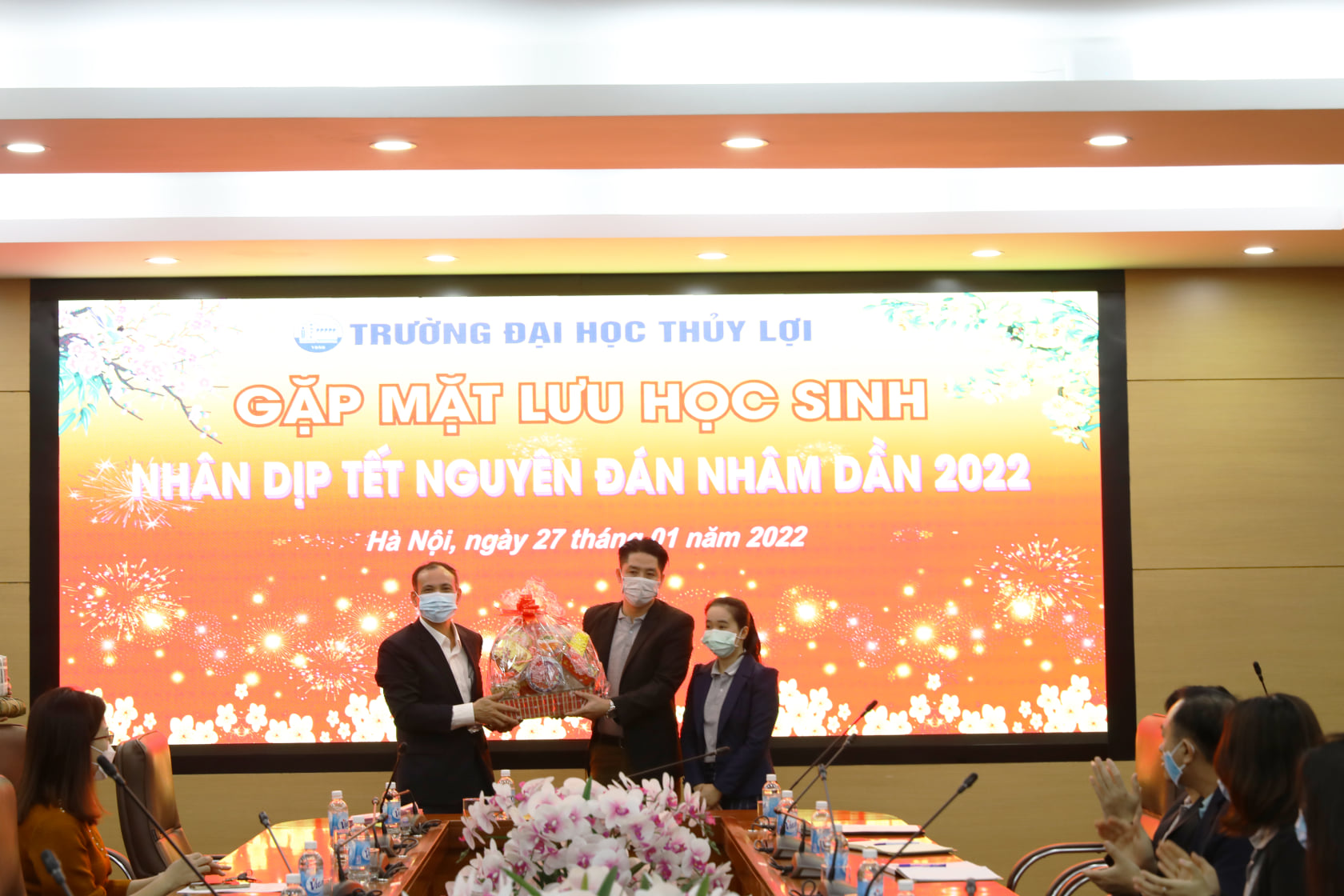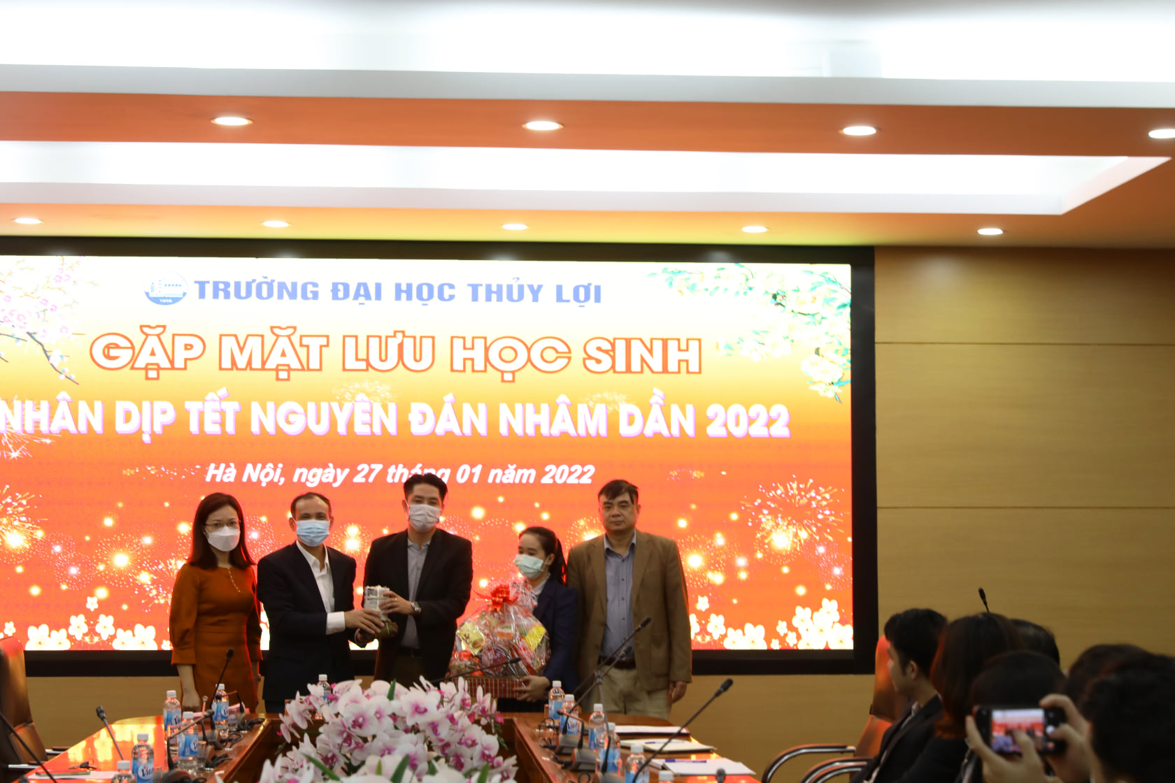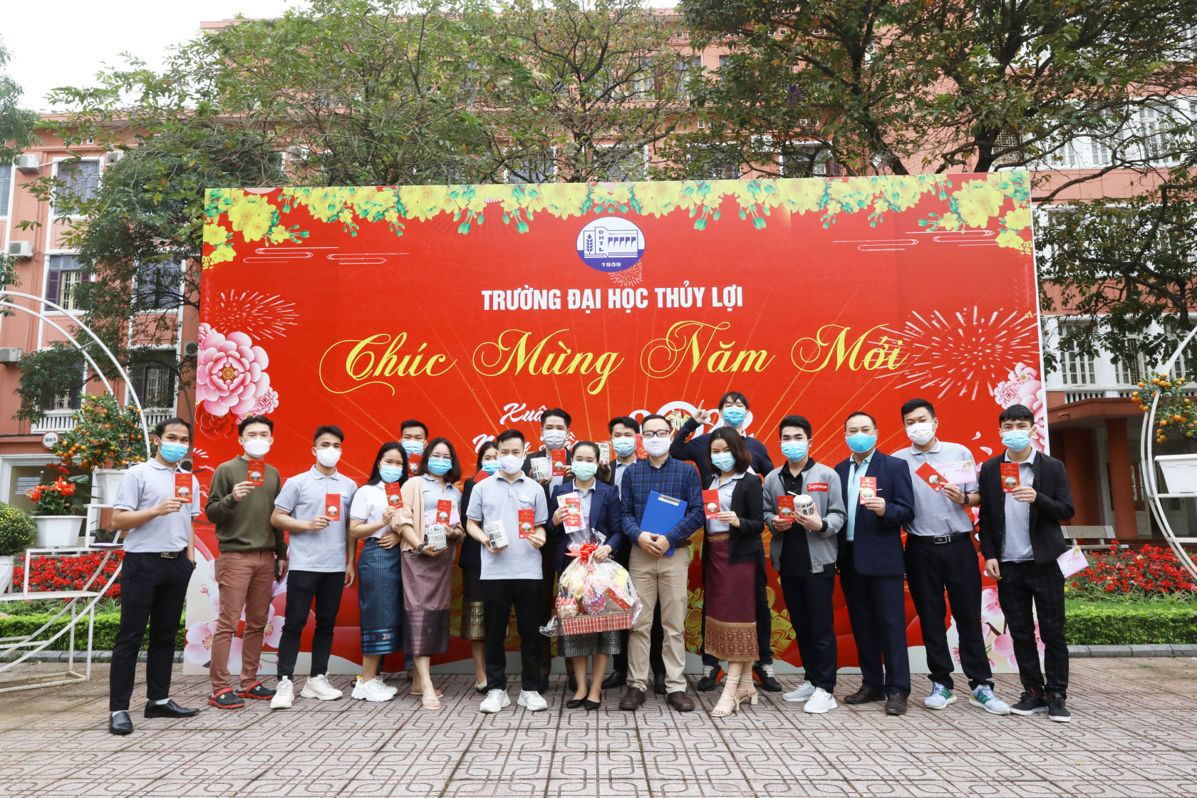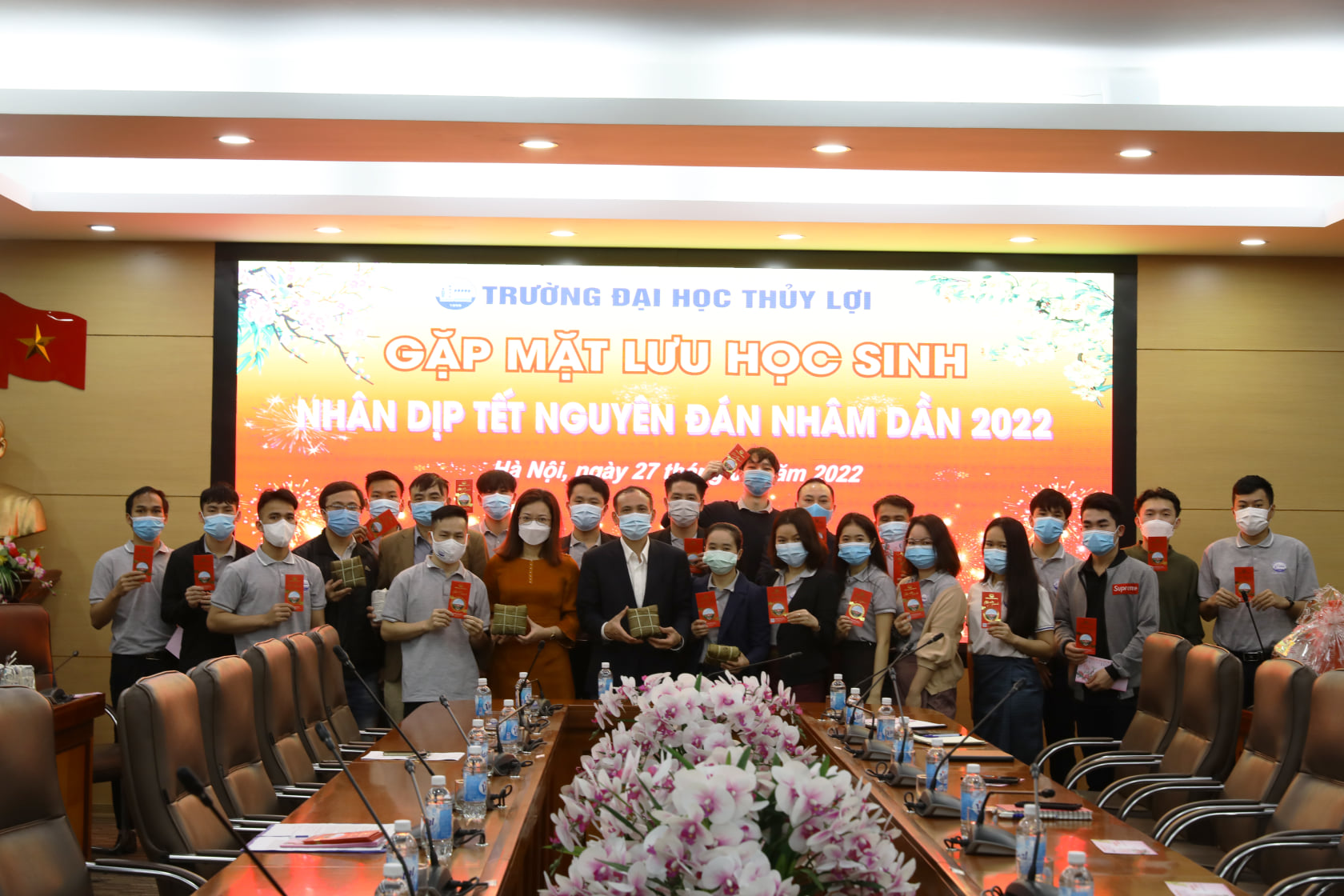 Trong dịp Tết năm nay, hơn 20 lưu học sinh nước ngoài đến từ các quốc gia Lào, Campuchia sẽ đón thêm một cái Tết xa quê tại Trường Đại học Thủy lợi. Tại buổi gặp mặt, GS.TS Nguyễn Trung Việt, Phó Hiệu trưởng nhà trường căn dặn các bạn Lưu học sinh cần giữ gìn sức khỏe, hạn chế di chuyển, tuân thủ đầy đủ quy định 5K trong phòng chống dịch để có một kì nghỉ thật sự ý nghĩa tại Việt Nam. Đây là năm thứ hai liên tiếp, các Lưu học sinh không thể về nước do tình hình dịch Covid-19 và đón Tết cổ truyền của Việt Nam tại trường.