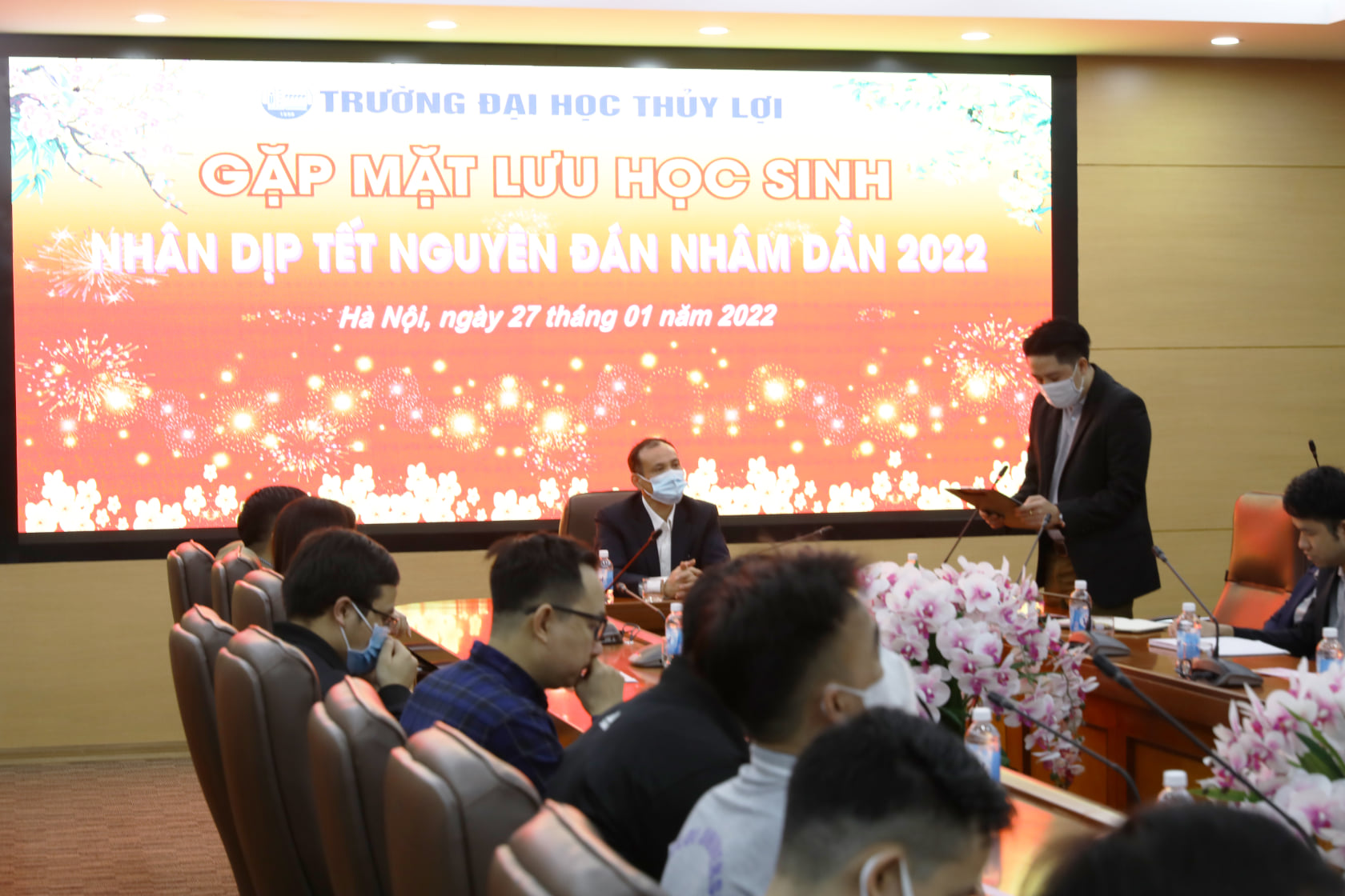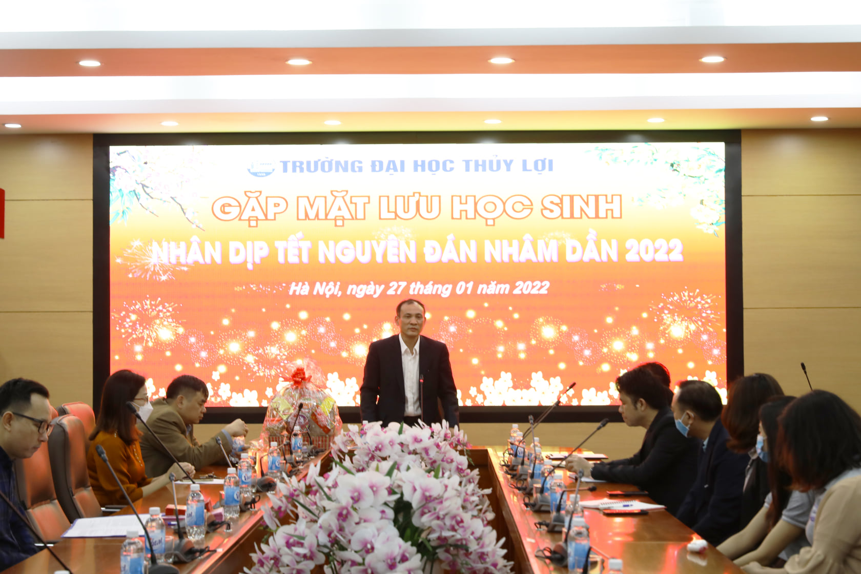 Trong dịp Tết năm nay, hơn 20 lưu học sinh nước ngoài đến từ các quốc gia Lào, Campuchia sẽ đón thêm một cái Tết xa quê tại Trường Đại học Thủy lợi. Tại buổi gặp mặt, GS.TS Nguyễn Trung Việt, Phó Hiệu trưởng nhà trường căn dặn các bạn Lưu học sinh cần giữ gìn sức khỏe, hạn chế di chuyển, tuân thủ đầy đủ quy định 5K trong phòng chống dịch để có một kì nghỉ thật sự ý nghĩa tại Việt Nam. Đây là năm thứ hai liên tiếp, các Lưu học sinh không thể về nước do tình hình dịch Covid-19 và đón Tết cổ truyền của Việt Nam tại trường.